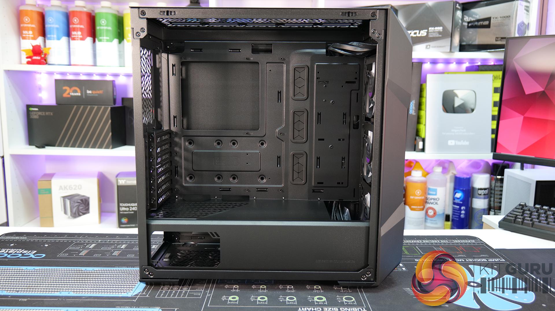 - A full-cover power supply shroud with a front cut-out for long radiator installation and a PSU window with a removable cover allows the user to choose whether to show or keep the power supply hidden.