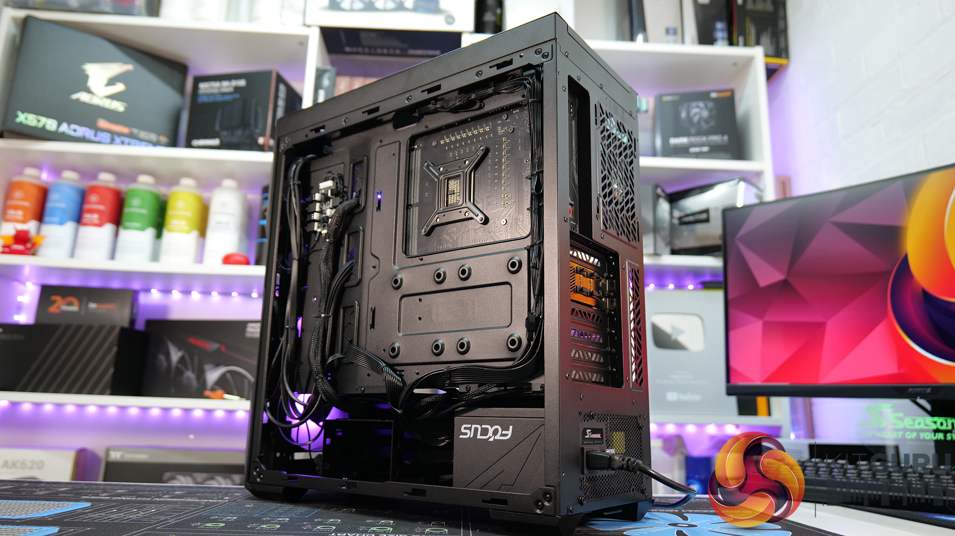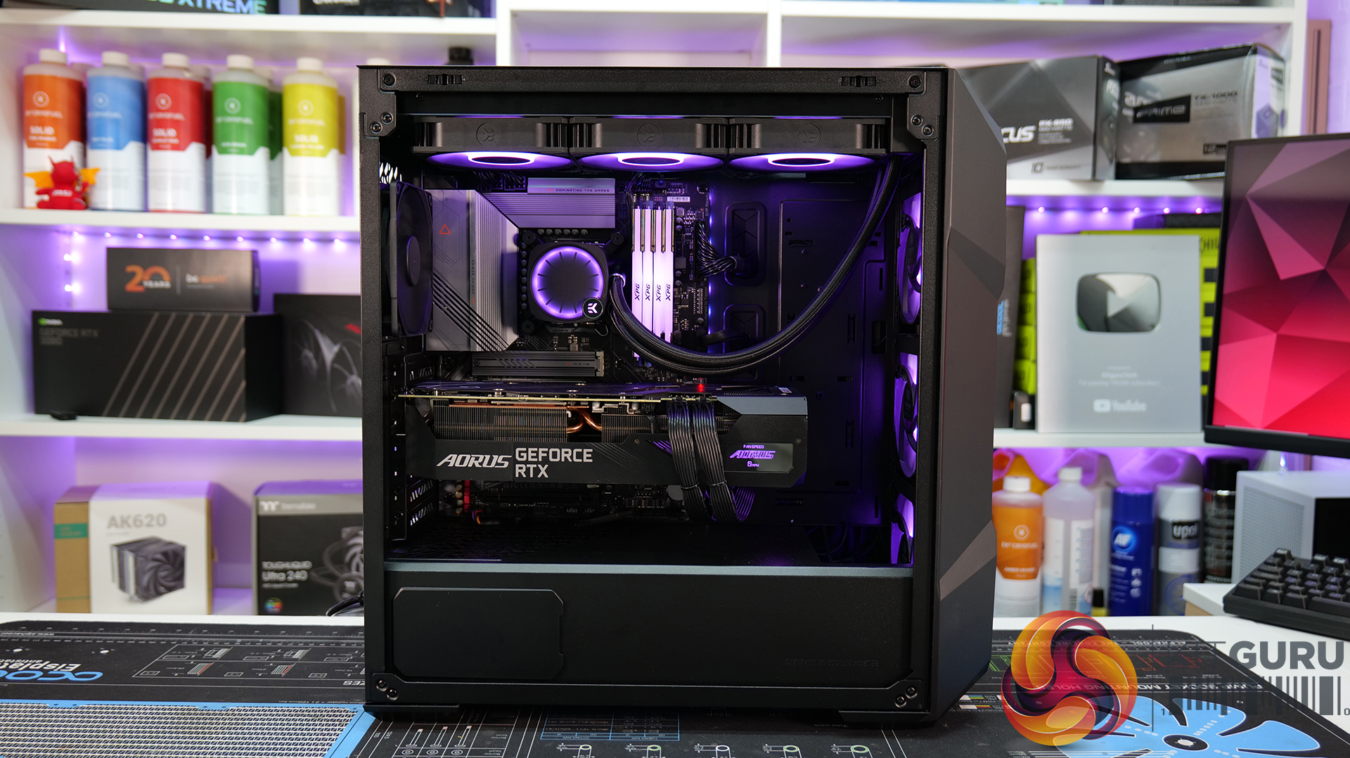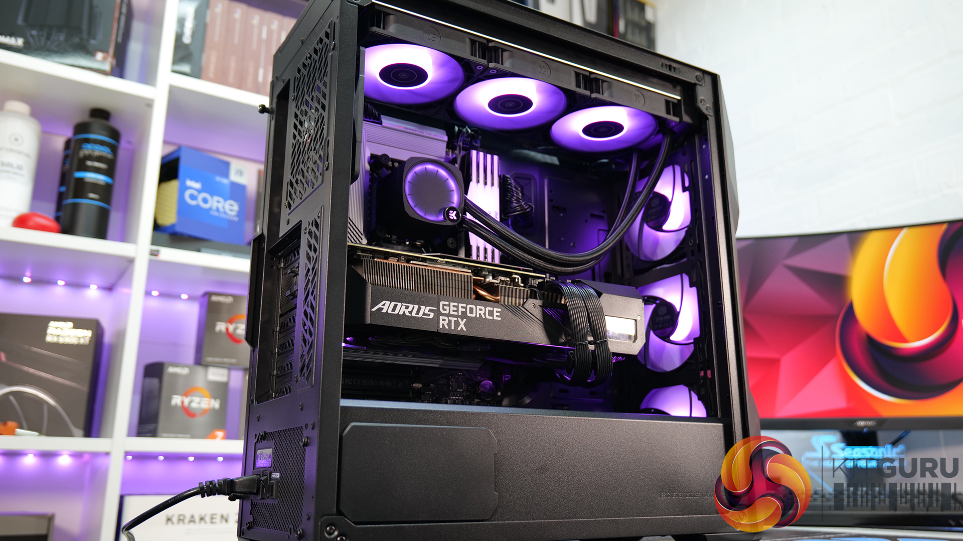 Thermal performance is measured with the case in various configurations, such as the default, with the tempered glass left-hand side panel removed and with the front panel removed to see how these configurations affect the CPU and GPU temperature. During testing, only stock case fans are used unless otherwise specified. All water pumps are set to maximum RPM and fans are set to a custom RPM curve by the Motherboard software/BIOS.