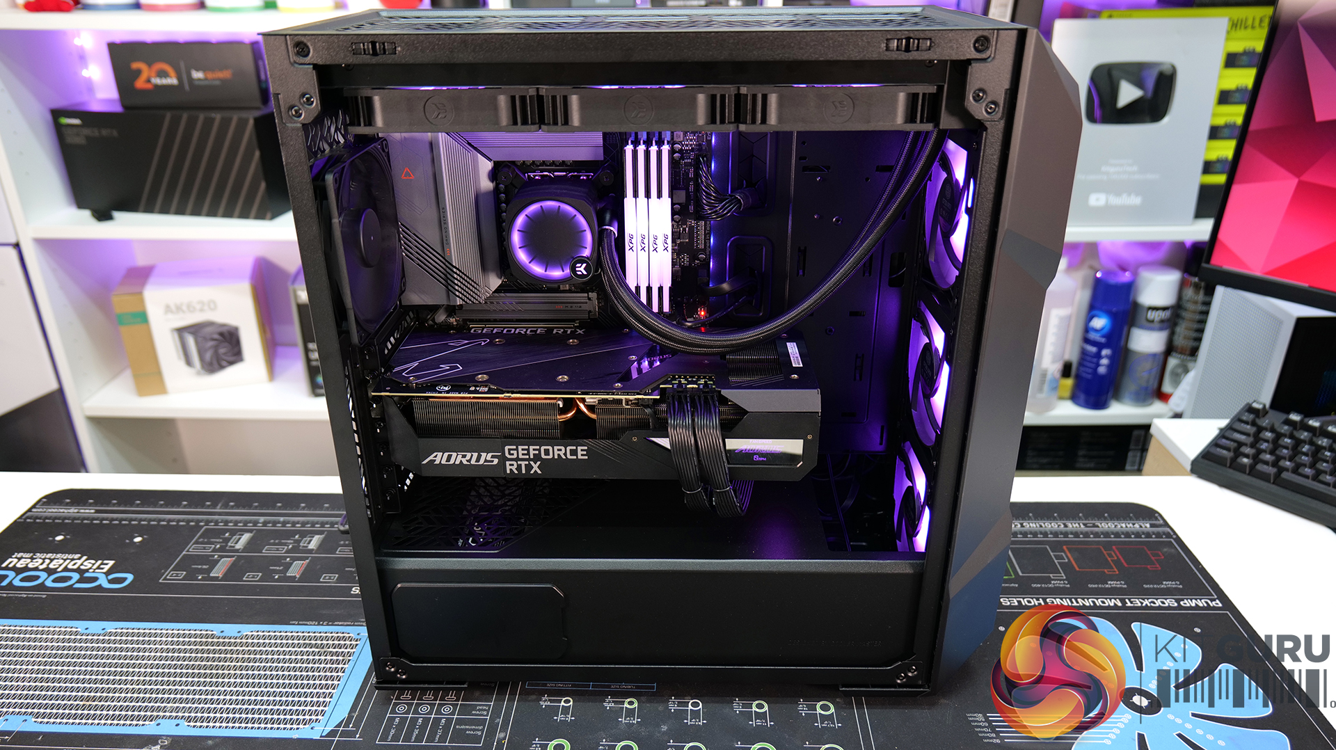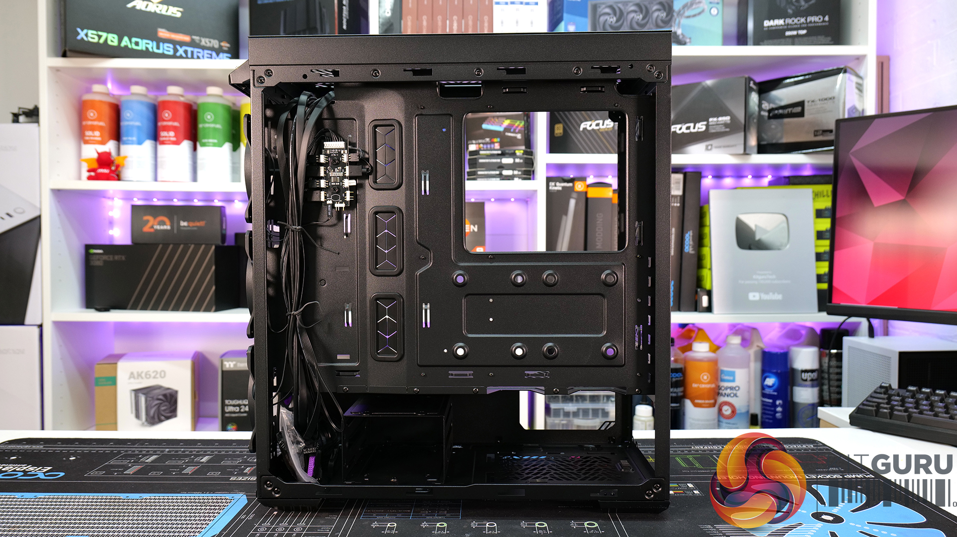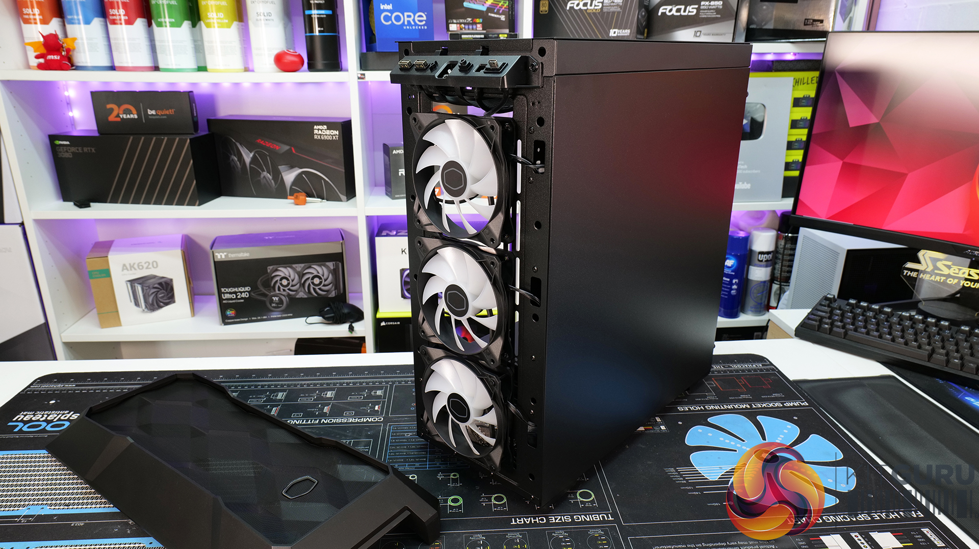Thermal performance is measured with the case in various configurations, such as the default, with the tempered glass left-hand side panel removed and with the front panel removed to see how these configurations affect the CPU and GPU temperature. During testing, only stock case fans are used unless otherwise specified. All water pumps are set to maximum RPM and fans are set to a custom RPM curve by the Motherboard software/BIOS.