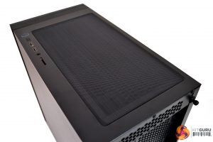 The top of the case is covered by a solid panel, to reduce noise, and this sits on top of the two 120mm/140mm fan mountings. This panel can be replaced with an included mesh filter, to use when installing fans or a radiator in the top section.