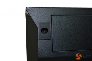 The front of the case had a full-length door that is hinged on the right-hand side, with a magnetic catch and rubber stoppers to the left. If needed, you can hang the door on the opposite side by simply removing the four hinge screws and the screws in the rubber stoppers, and switch them around – very simple.