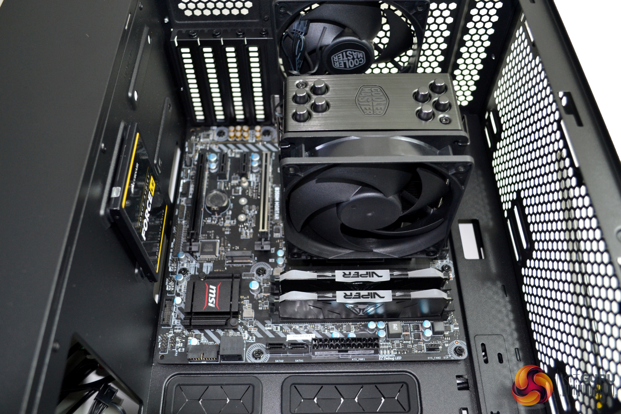 In the S400, there is clearance for up to a 167mm (with steel side) and 166mm (with tempered glass) CPU air cooler. For this build, we had no issues getting our Cooler Master Hyper 212 Black Edition to fit into this space.