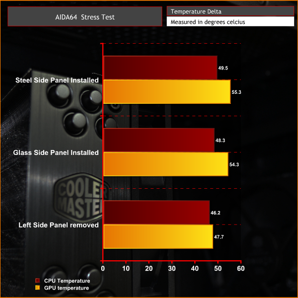 To fully stress test the system we will run AIDA64 for 30 minutes stressing CPU, FPU, Cache and GPU. Once with the steel side panel installed, next with the tempered glass panel installed, then finally with no side panel installed. With this data we can compare how each scenario affects thermal performance.