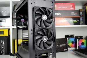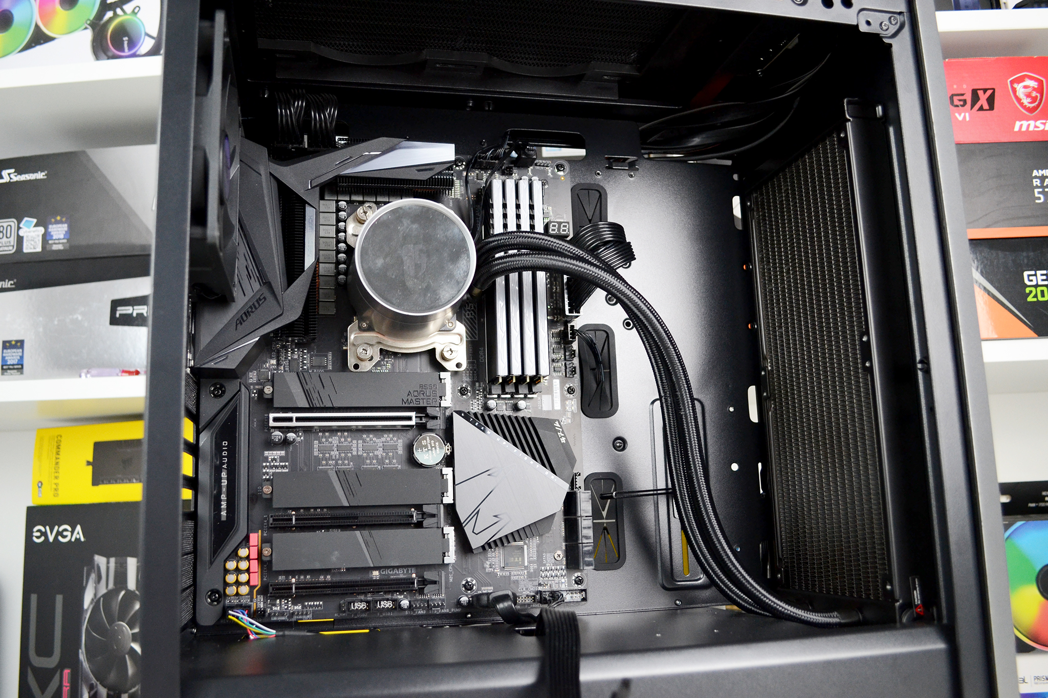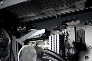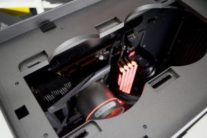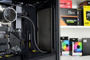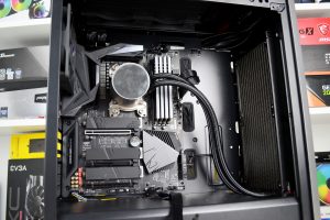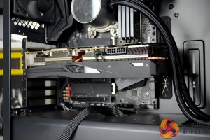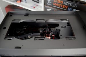 Official specifications of the CL500 suggest that up to 330mm graphics cards can be installed. We chose the Gigabyte Aorus RX 5700 XT card that measures approximately 310mm in length and this easily fitted into the system and left 90mm of space to the front-mounted AIO radiator.