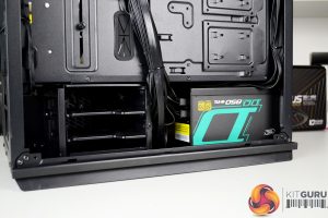 Power supply installation is a little tight in the CL500, this could have been improved if Deepcool had made the 3.5-inch HDD cage removable. Sadly, the cage cant be removed, however, loosening the screws and sliding the HDD cage towards the front of the case does offer a few extra millimetres when installing the power supply inside the PSU shroud.