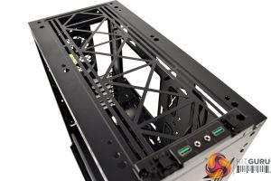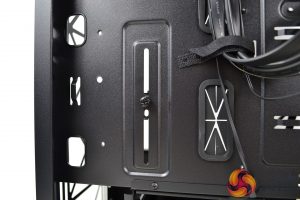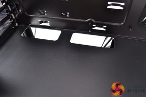 To the right of the motherboard tray and towards the front of the case are three cable management cut-outs with rubber grommets. Additional cut-outs above and below the motherboard tray are present, however, these are not protected with rubber grommets, which is a little disappointing.