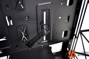 Since there are no 5.25-inch optical drive bays in the Macube 310P, the interior feels very spacious, especially when you realise that this is quite a compact mid-tower. At the front of the case is the VGA support bracket which is mounted in a slot for adjusting the height to accommodate the position of various graphics cards.