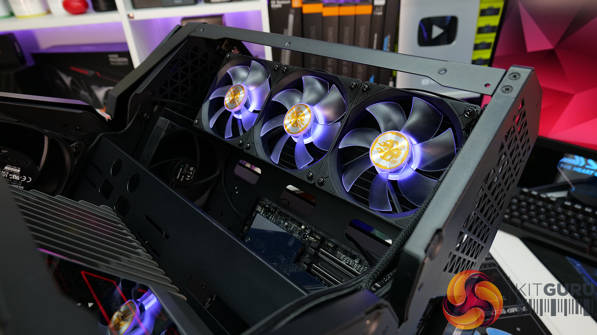 The Infinity comes without any pre-installed fans, the original came with four 120mm in the front and one in the rear. Also, the app-controlled fan/RGB hub has been taken away, the Infinity has a 3-pin RGB motherboard connection to control the front RGB lighting, there’s no PCIe riser kit included with the infinity and the massive HDD caddy has been dumped too, but an additional 360mm radiator/fan bracket is in its place.