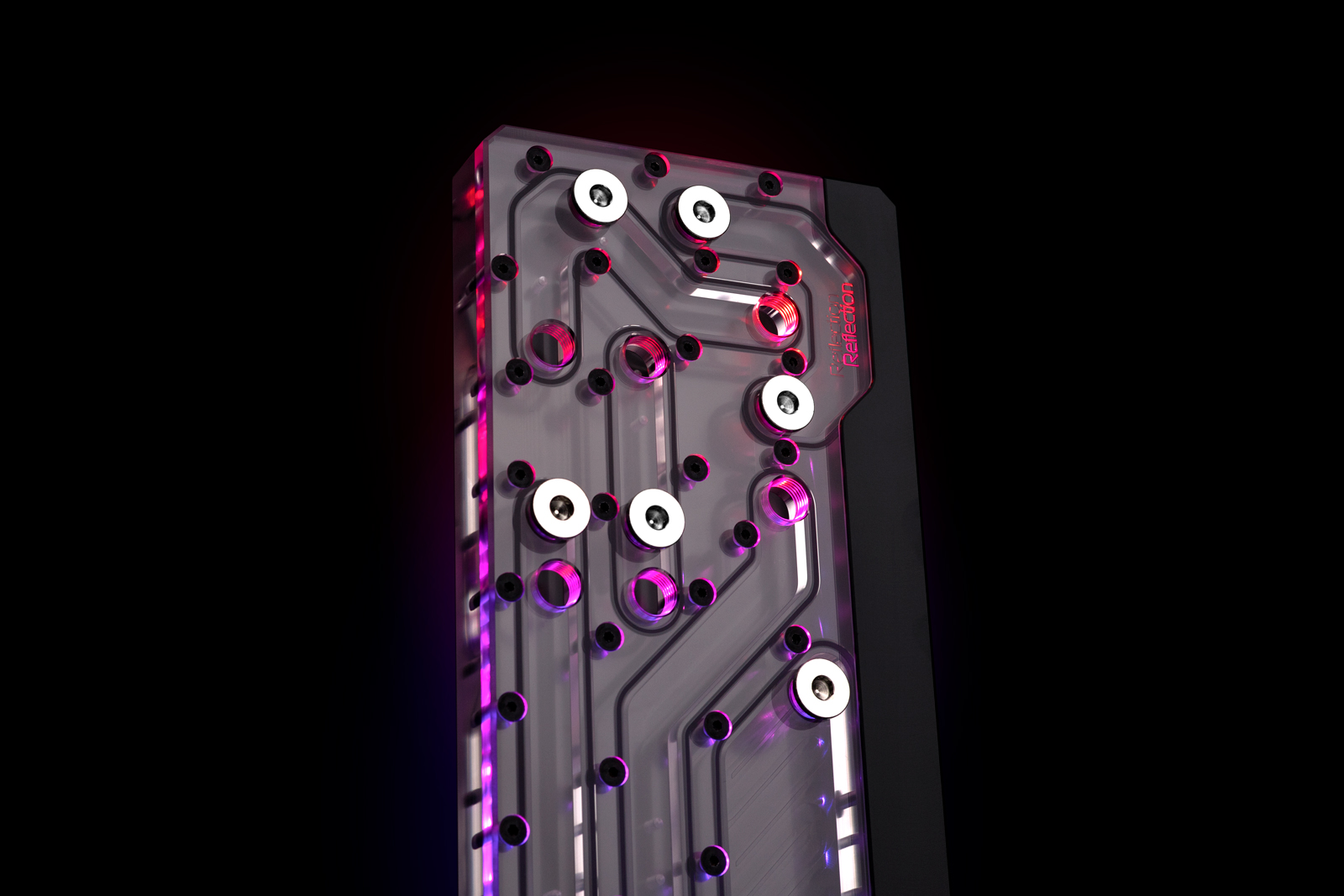The EK-Quantum Reflection Fractal ATX D5 PWM D-RGB distribution plate provides an advanced custom water cooling solution for supported Fractal Design cases including the new Define 7 and 7 XL series, as well as the Define R6, Define S2, Vector RS and the Meshify S2.