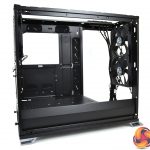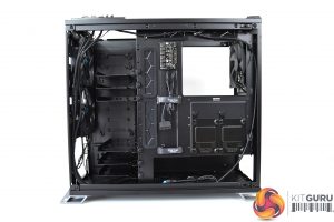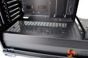 The interior of the Vectors RS provides scope for almost every type of system installation with its modular design. The huge amount of options in storage configuration makes it an ideal home server case. In open configuration, the case would be ideal for high end custom water cooling.