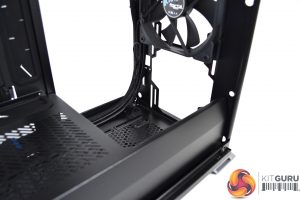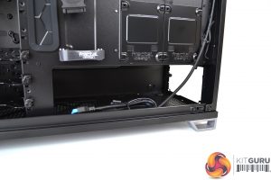 A full cover ventilated PSU shroud placed at the bottom of the case helps hide away untidy looking cables and doubles up as an alternative SSD mounting location. Towards the front of the PSU shroud, there is a cut away portion to facilitate radiator installation.