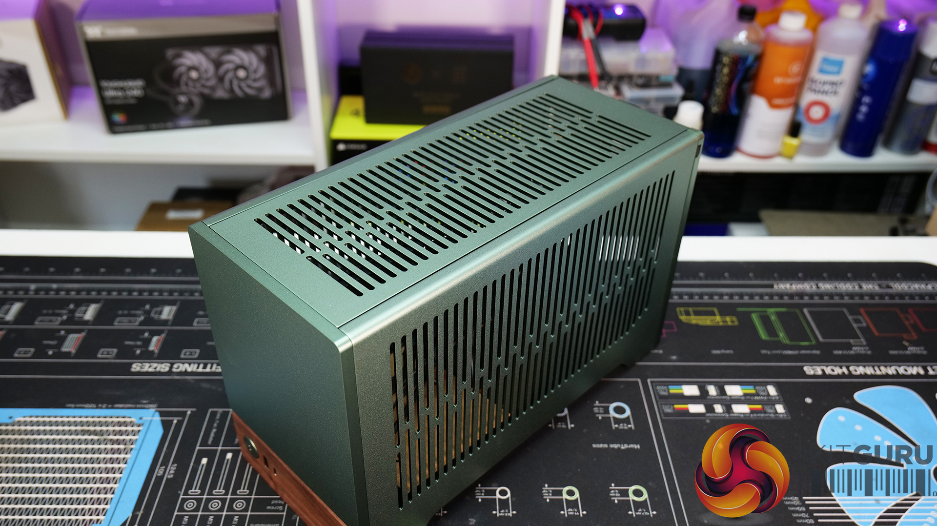 The Terra is available in three different exterior finishes, Jade, Silver and Graphite. The Jade version is a light green, graphite looks almost black and silver is, well, silver. All three case versions cost the same at USD 179.99 or £174.99 here in the UK. Our sample is Jade which has a slight metallic look to the anodised finish with Walnut trim which looks quite sophisticated. The chassis panels are all heavily vented apart from the front panel, airflow should be good so expect cooling to work well.