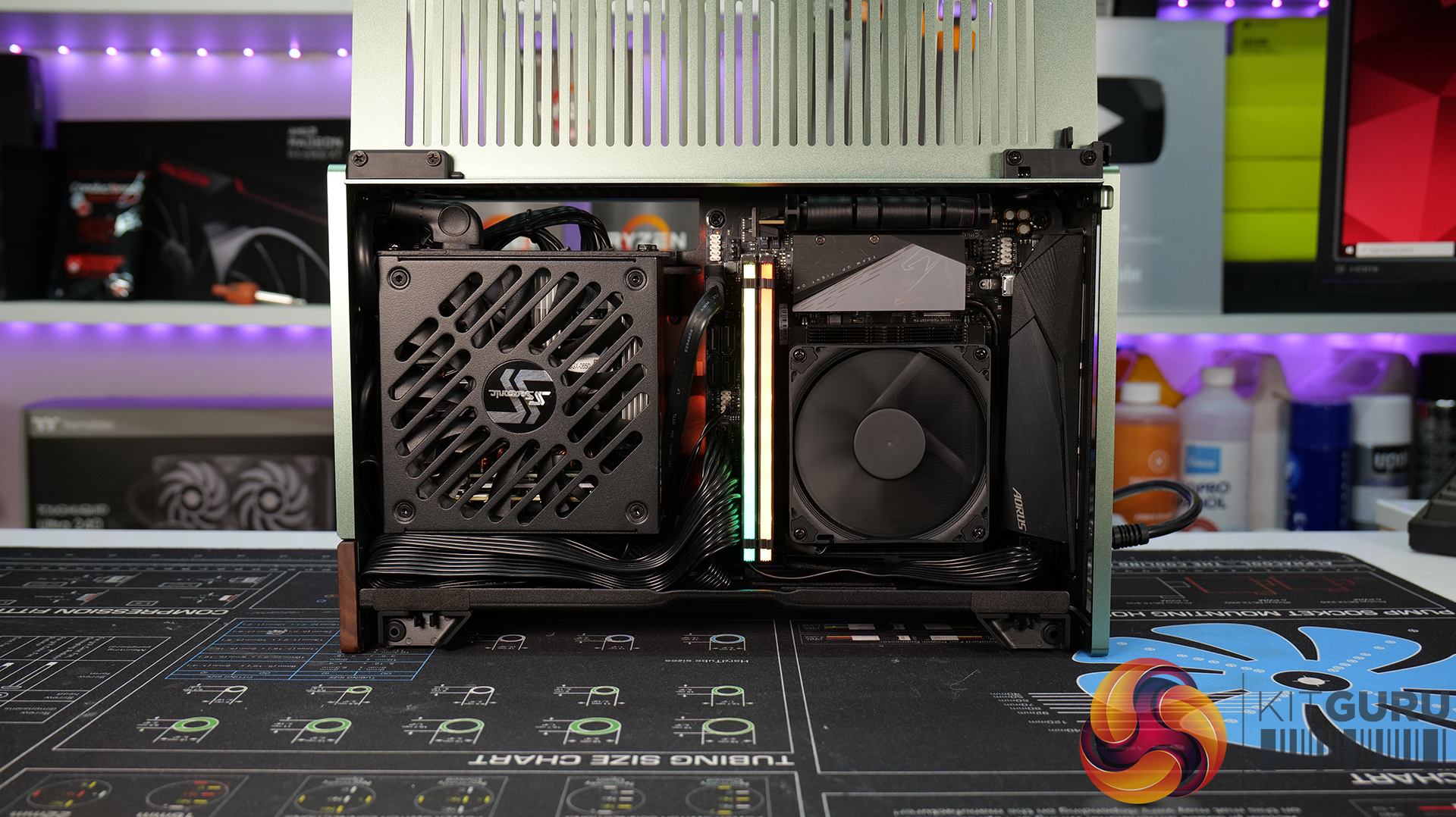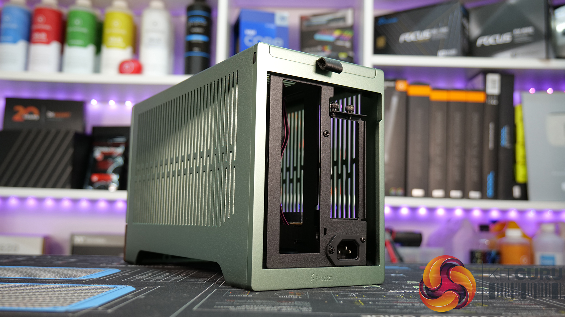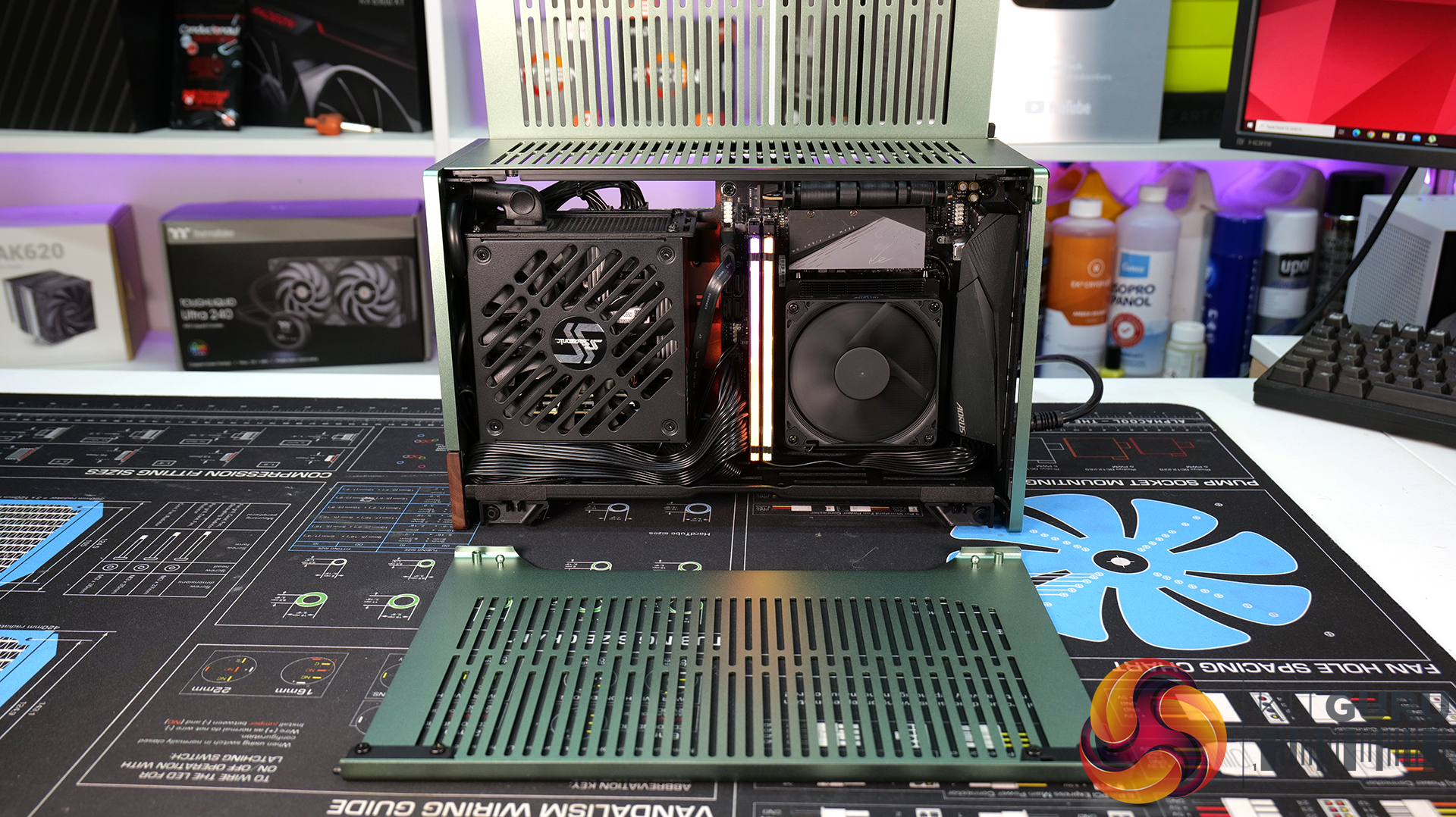 The case is a little lacking in terms of cooling especially if you have an SFX-L power supply installed. As I found during the installation of the Seasonic Focus SGX PSU, the 125mm length of the power supply means that the space for the rear fan is completely blocked off, so no case fans could be installed. However, this doesn’t seem to be much of a problem for cooling the hardware as our testing shows that the heavily ventilated panels do a good job of allowing cool air in and warm air out.
