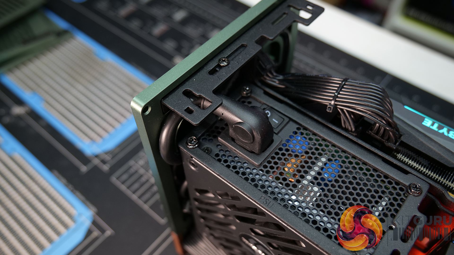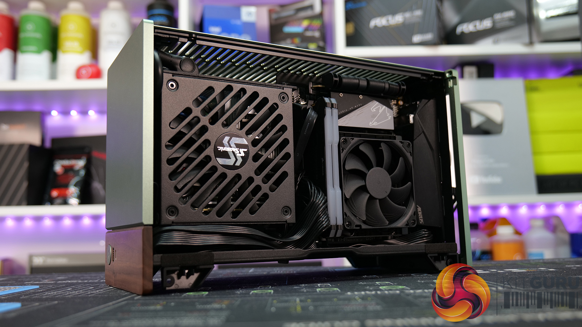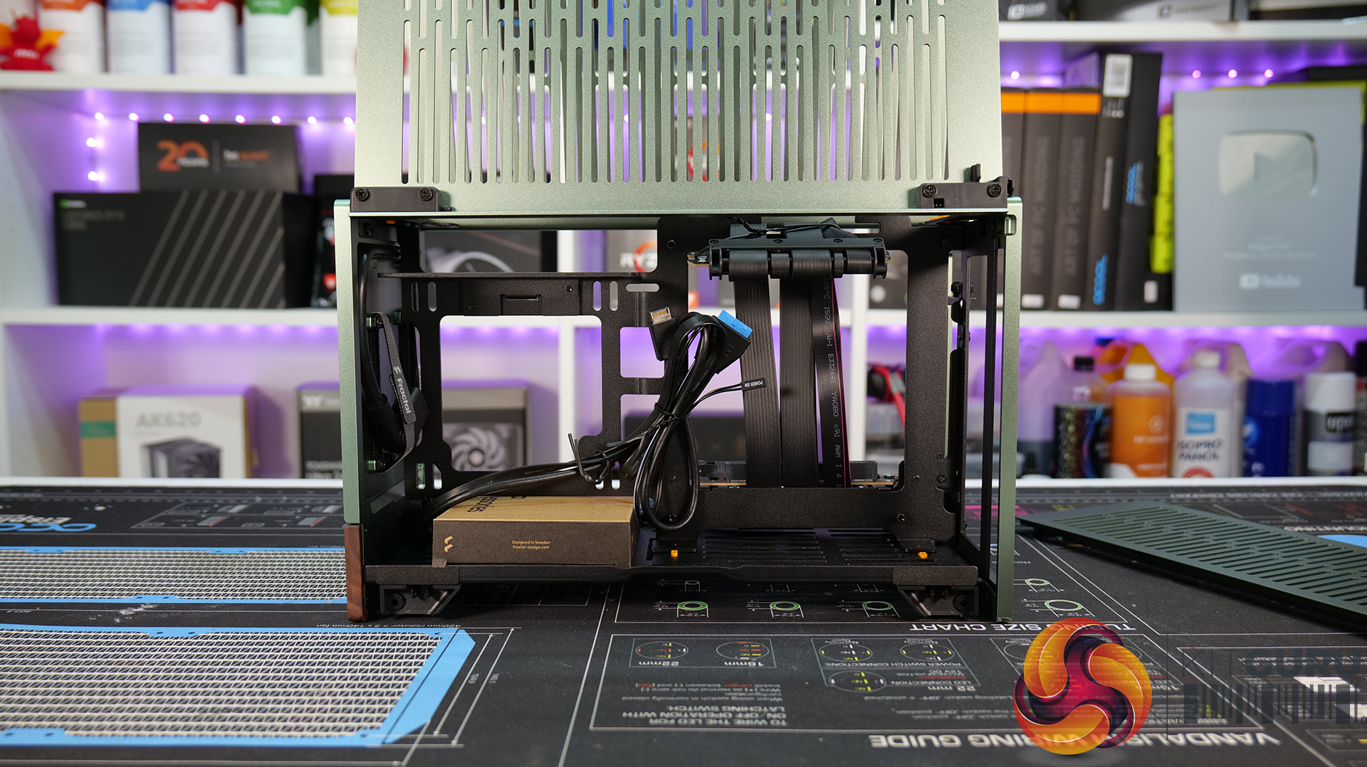 The case is a little lacking in terms of cooling especially if you have an SFX-L power supply installed. As I found during the installation of the Seasonic Focus SGX PSU, the 125mm length of the power supply means that the space for the rear fan is completely blocked off, so no case fans could be installed. However, this doesn’t seem to be much of a problem for cooling the hardware as our testing shows that the heavily ventilated panels do a good job of allowing cool air in and warm air out.