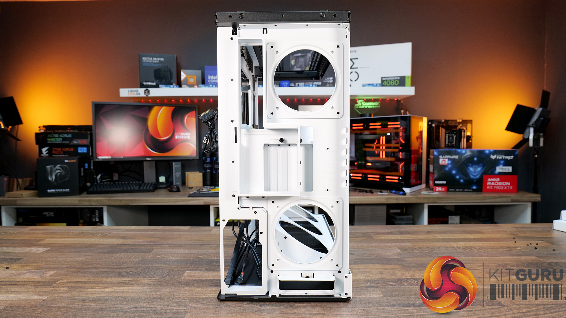 For a large and quite expensive case, the front I/O connectivity is very sparse, only two USB type-A ports and a single type-C are what I would expect from a cheaper and smaller case. The front I/O isn’t positioned ideally for users who want the case on the desk either, this layout is more suited to placing the system on the floor or under a desk. The good thing is that the case has a solid floor which doesn’t need to be open for airflow so the case can be placed on a carpet without any worry of causing cooling issues.