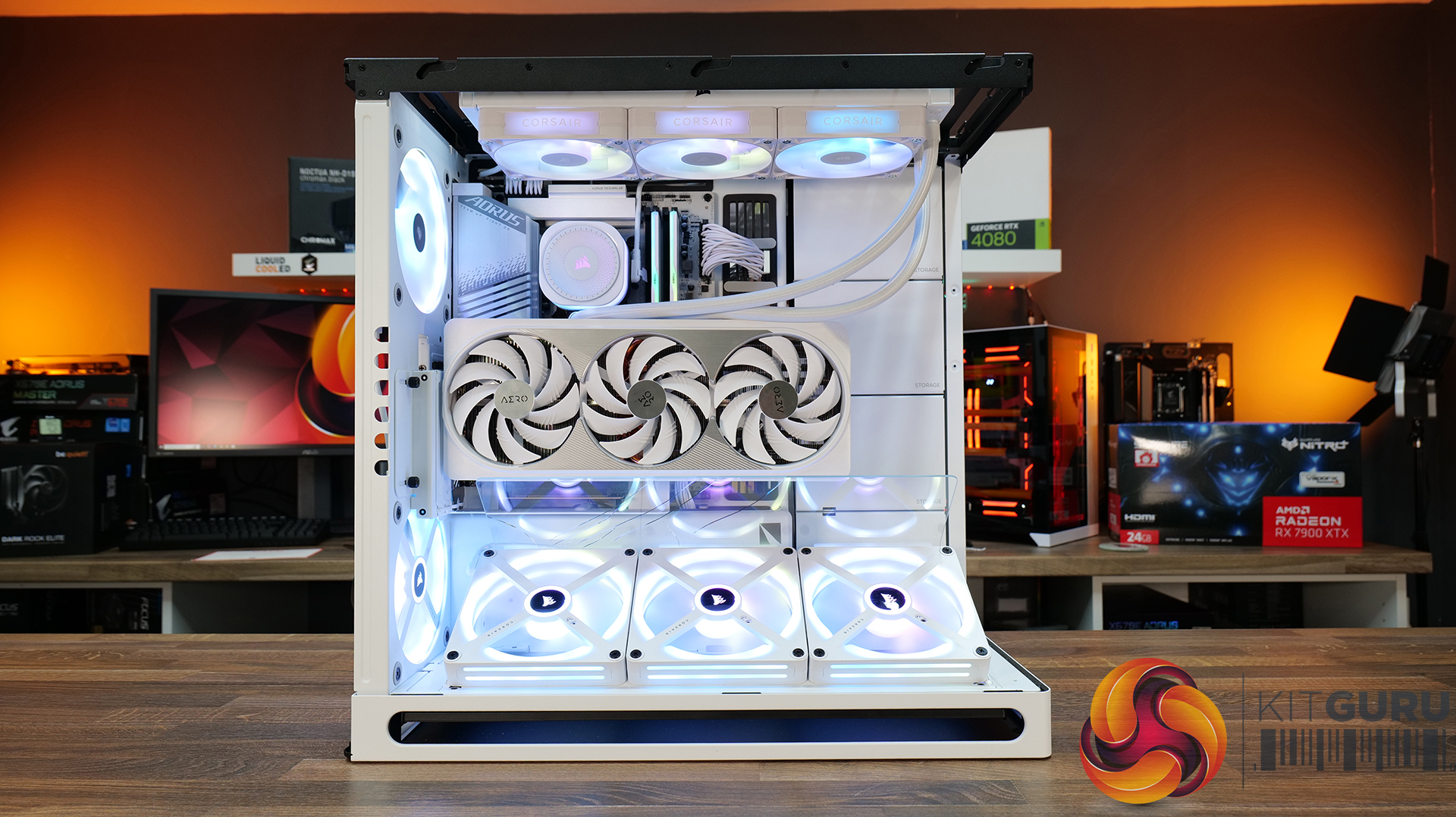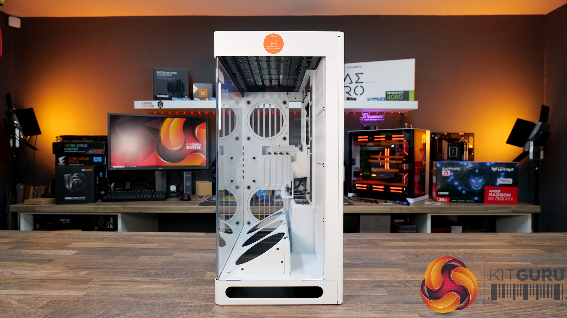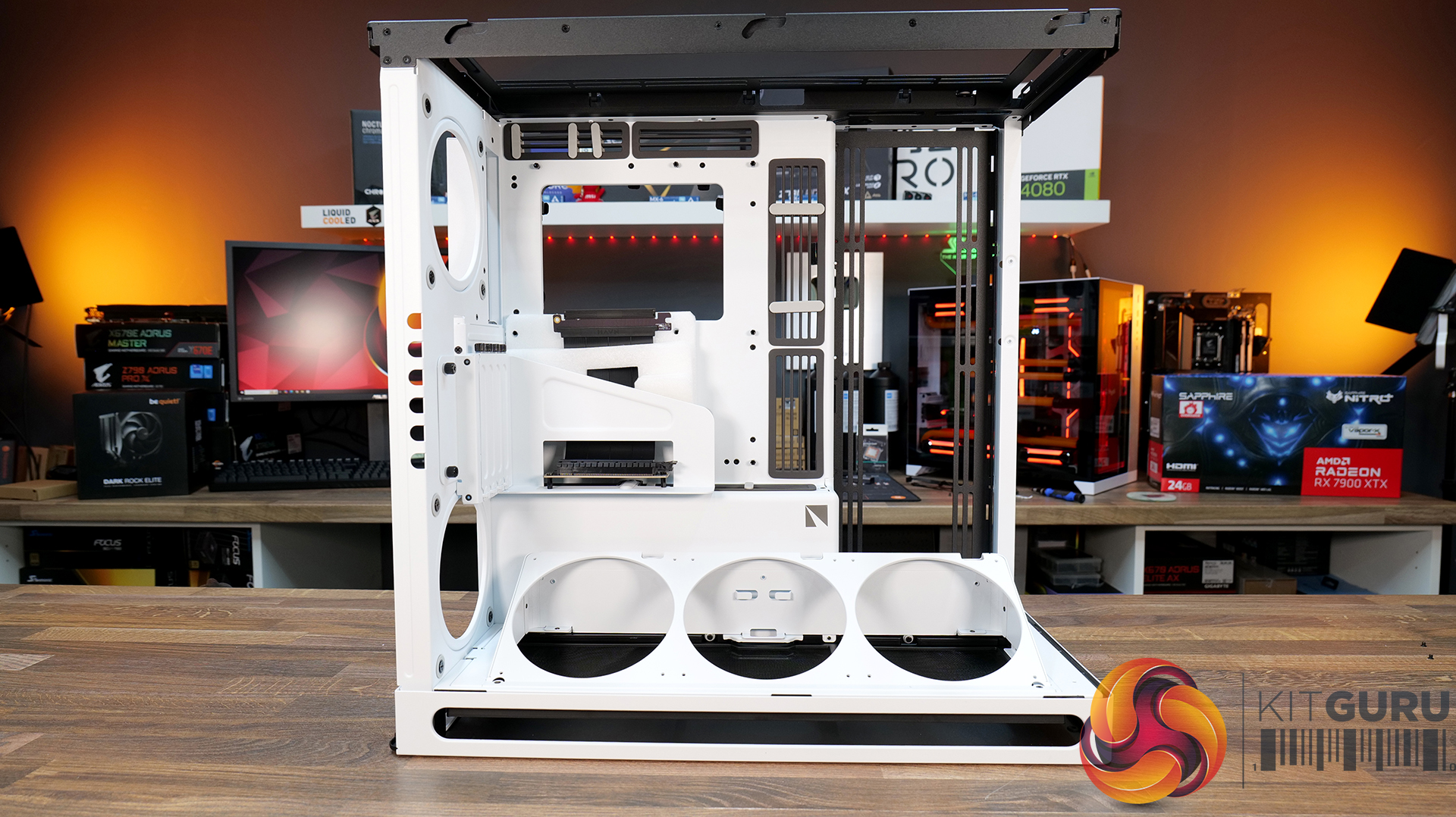 I also had a bit of an issue installing an Arctic Liquid Freezer III AIO due to space restrictions caused by the GPU being mounted vertically, and I find the process of installing/removing the bottom angled fan bracket quite fiddly when the vertical GPU is installed and the glass panel fitted to the angled fan mount. You can see in the video that moving the fan bracket several times for thermal testing resulted in the glass being broken, which was my fault for putting excess pressure on the glass, but again I think the mechanism for installing/releasing the angled fan bracket could be improved to minimise the chances of this happening for an end user.