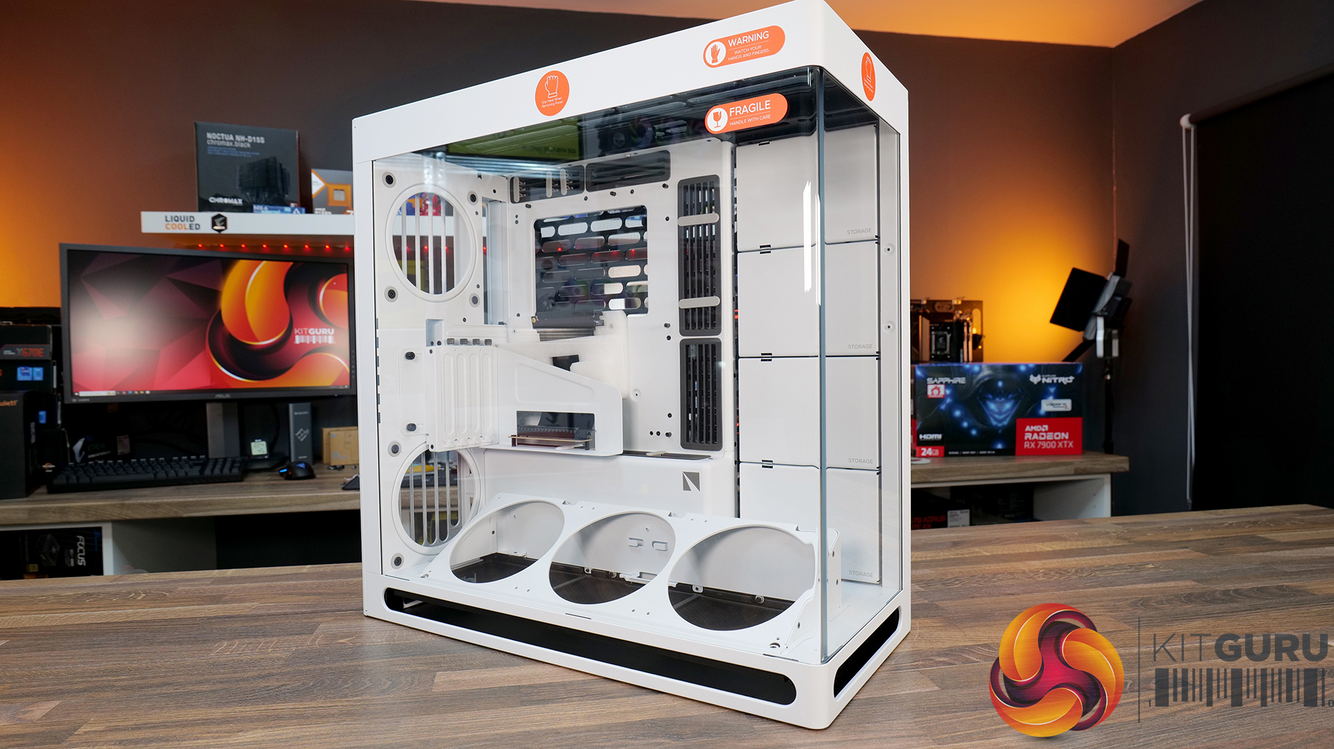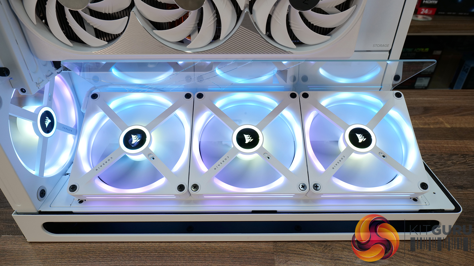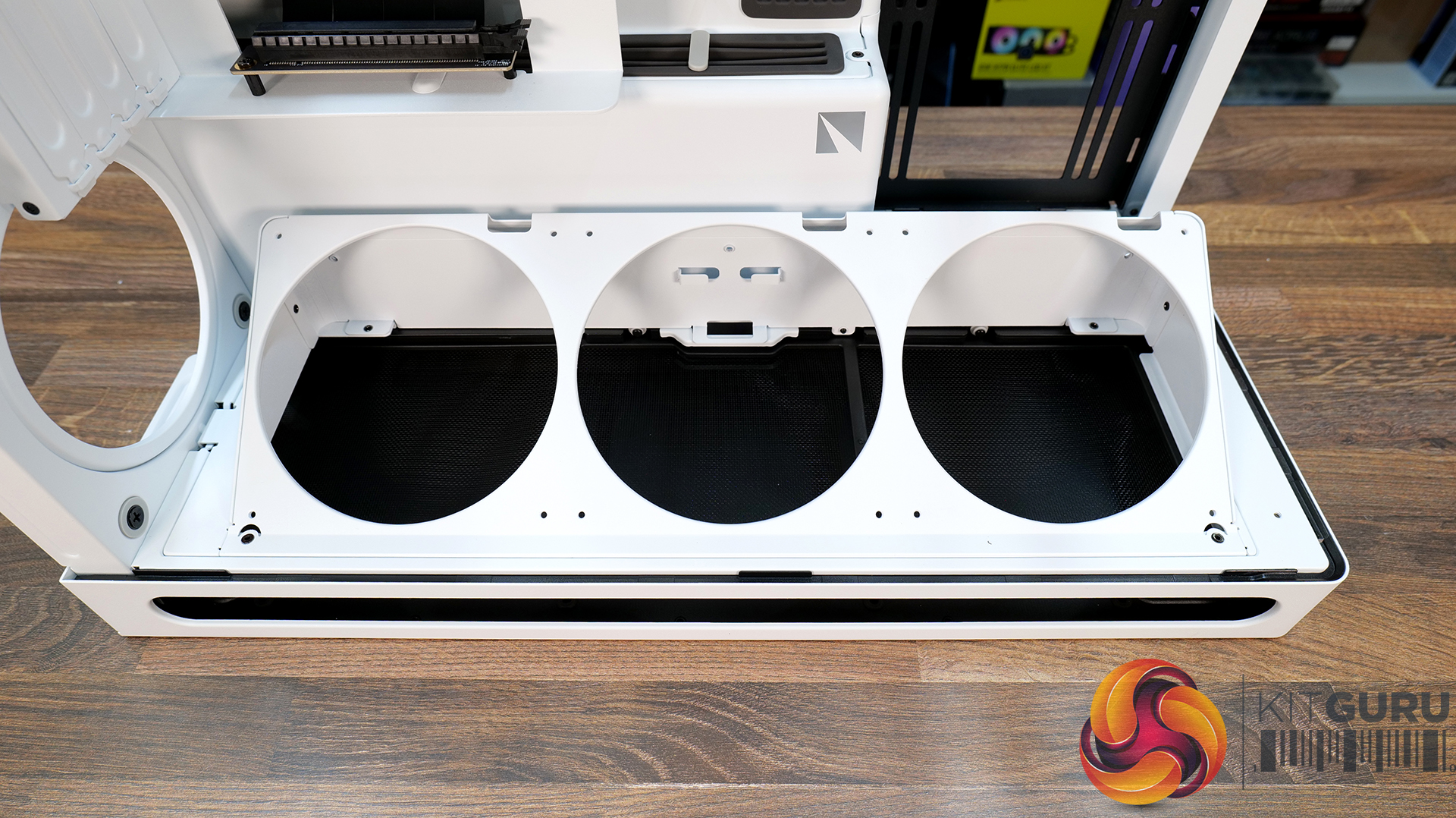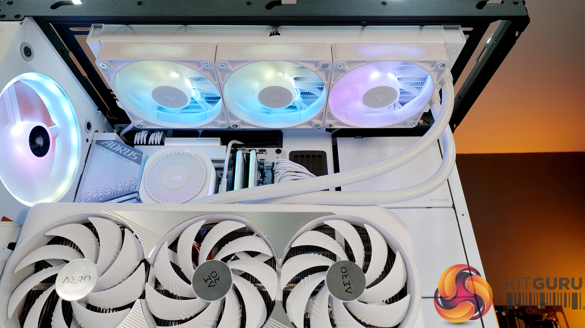 I also had a bit of an issue installing an Arctic Liquid Freezer III AIO due to space restrictions caused by the GPU being mounted vertically, and I find the process of installing/removing the bottom angled fan bracket quite fiddly when the vertical GPU is installed and the glass panel fitted to the angled fan mount. You can see in the video that moving the fan bracket several times for thermal testing resulted in the glass being broken, which was my fault for putting excess pressure on the glass, but again I think the mechanism for installing/releasing the angled fan bracket could be improved to minimise the chances of this happening for an end user.