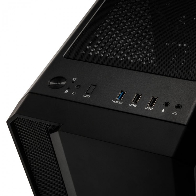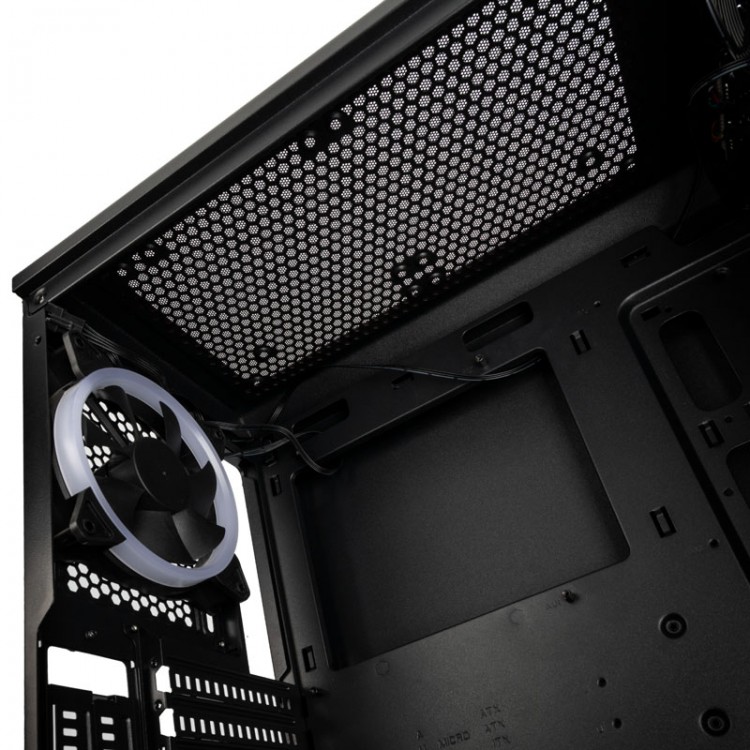 The front panel provides excellent airflow potential with its mesh vent allowing cold air to be pulled inside the chassis, keep components inside the case running at optimal temperature. The front I/O panel features a lighting switch for scrolling through various RGB colours and patterns, alternatively, the RGB lighting can be connected directly to the motherboard and controlled via software.