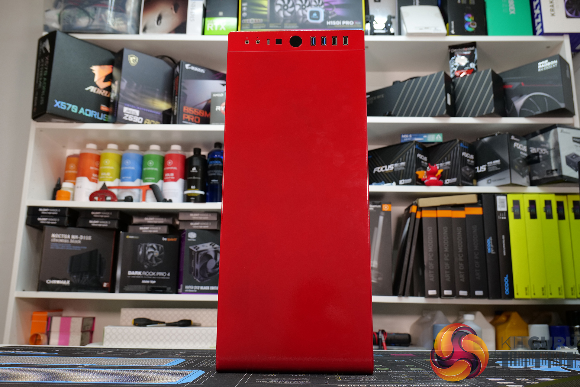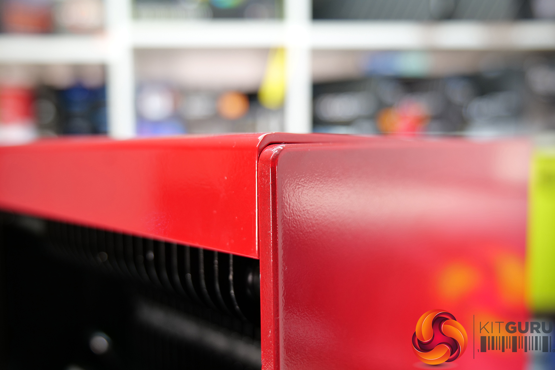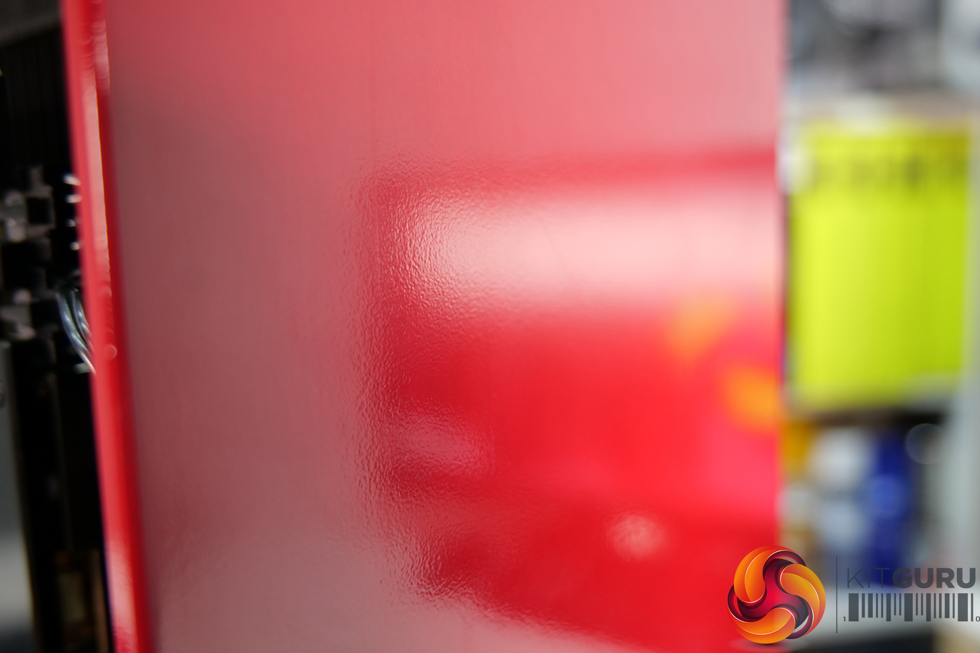 Our sample came with a special colour coating in red. The powder coating finish is applied by MonsterLabo at their factory and like the top cover design, it's not of the high quality that you would expect from an almost €900 chassis (the colour coating costs an extra €100). Areas of the powder coating look ok and quite smooth and glossy, but other areas such as the front panel suffer from the ‘orange peel' effect which looks quite poor.