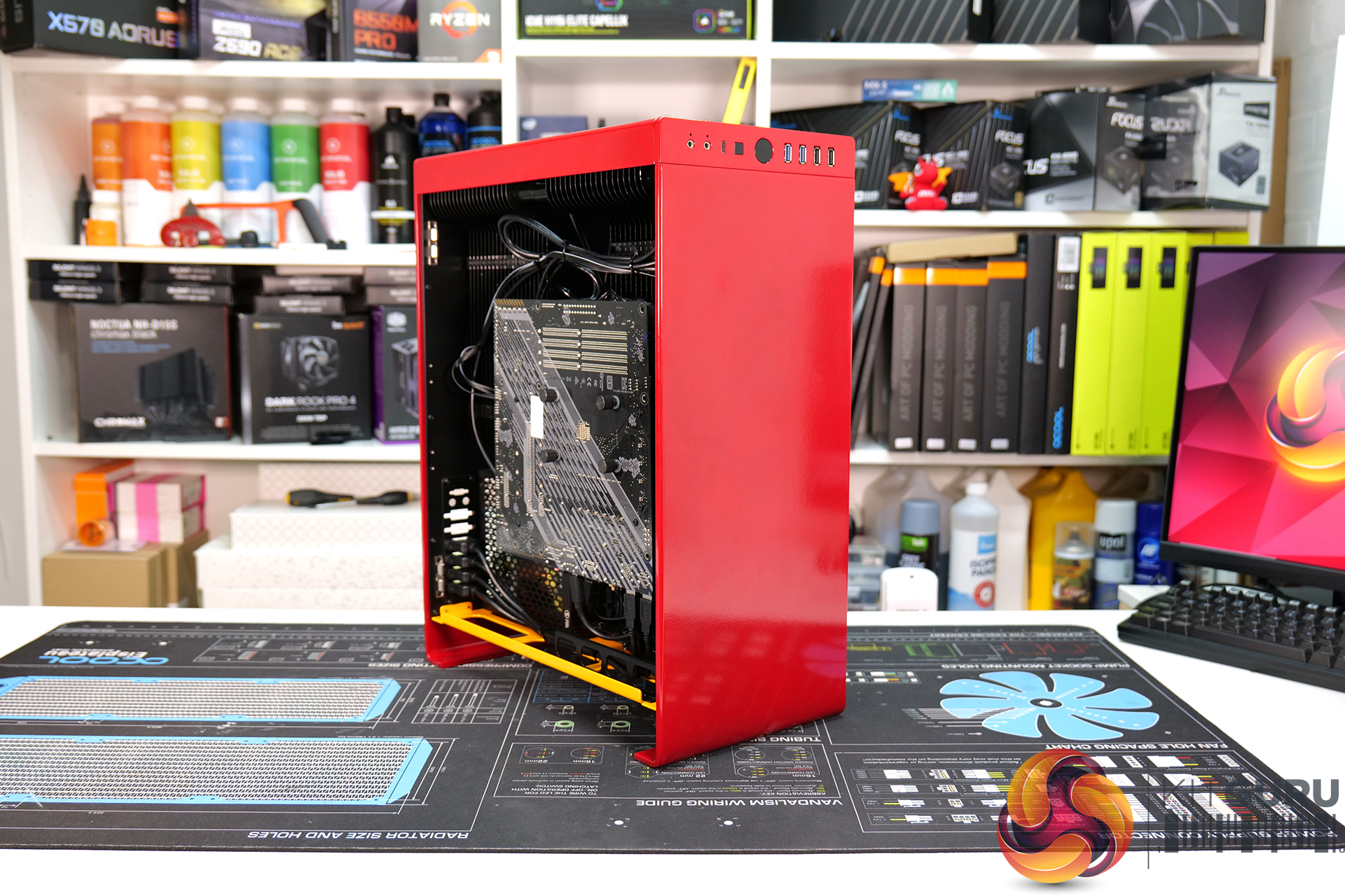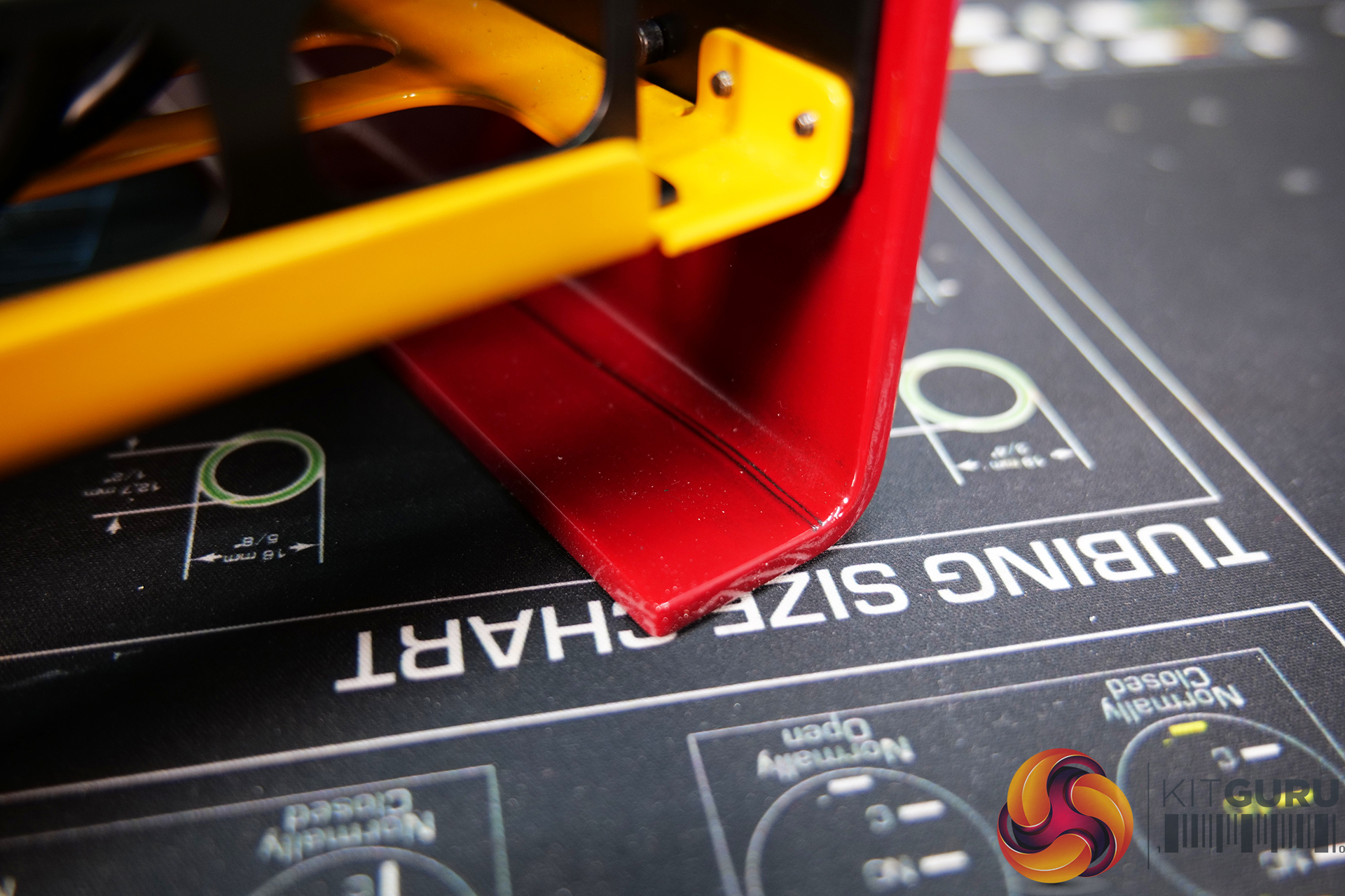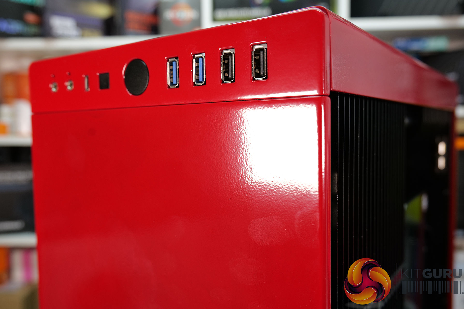 Our sample came with a special colour coating in red. The powder coating finish is applied by MonsterLabo at their factory and like the top cover design, it's not of the high quality that you would expect from an almost €900 chassis (the colour coating costs an extra €100). Areas of the powder coating look ok and quite smooth and glossy, but other areas such as the front panel suffer from the ‘orange peel' effect which looks quite poor.
