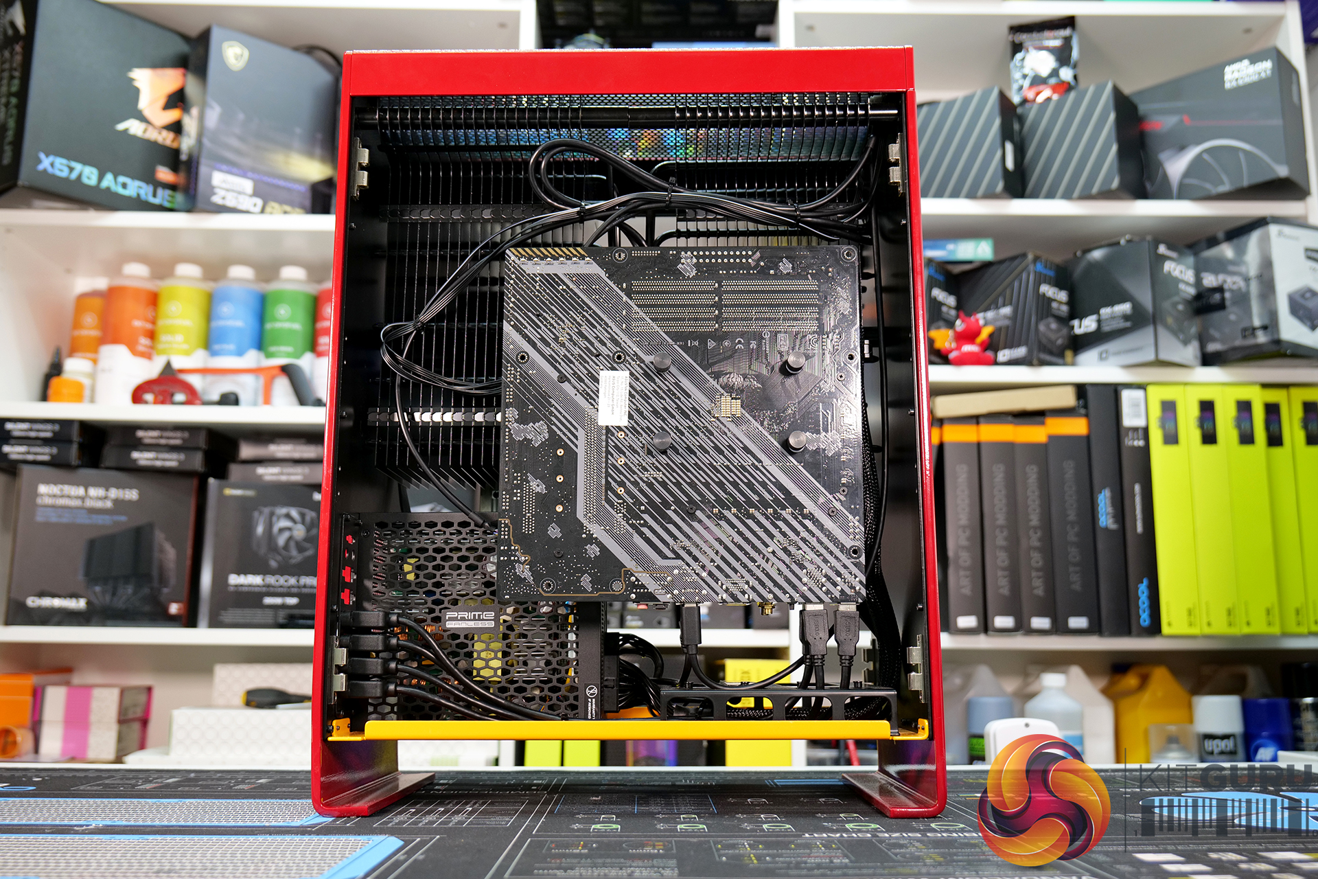 Installing a system inside The Beast is very different to a conventional chassis. The motherboard is almost floating inside the case as the only mounting points are via the CPU cooler mounts, the usual standoff and screw approach isn’t used in The Beast, so the motherboard it simply hanging from the CPU cooler, but it is surprisingly firm. The downside for some will be that the motherboard components are not visible or easy to access.