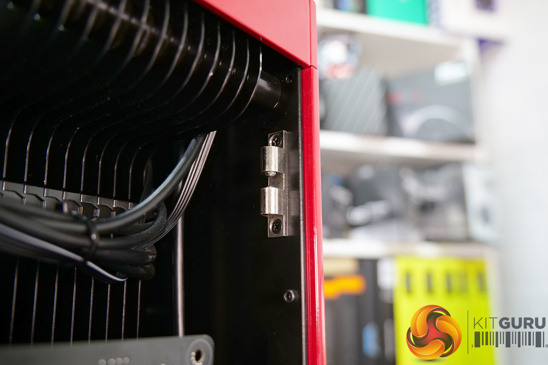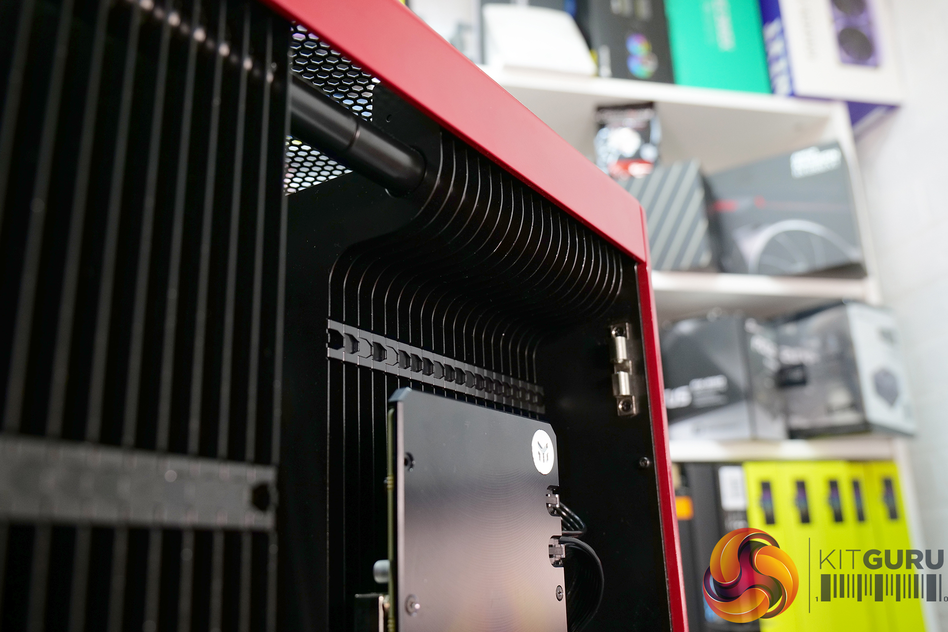 There are removable tempered glass panels on both the right and left-hand sides of the chassis, aluminium panels are also available as an option. These panels are held in place by four catches, two on each side of the panel. The solution is very fiddly and makes it difficult to line up and fit the glass panels. A hinge system with a magnetic catch or similar would be better. The catches are also very cheap quality.