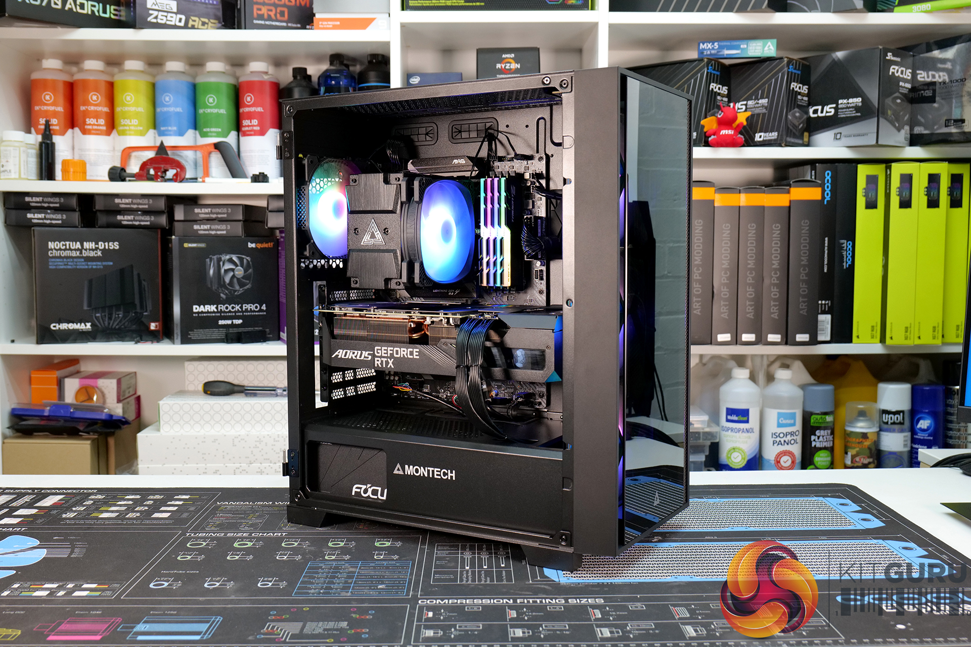 This isn’t the end of the world, but it seems like a silly design error and I am really surprised that the issue wasn’t picked up on and changed before the case went into production. Another minor niggle is the Montech logo on the PSU shroud, it looks a little out of place, also the RGB hub could have more spare ARGB headers to connect extra Montech ARGB components to, such as the CPU cooler we used in the build. But other than those minor issues, the build went really well overall.