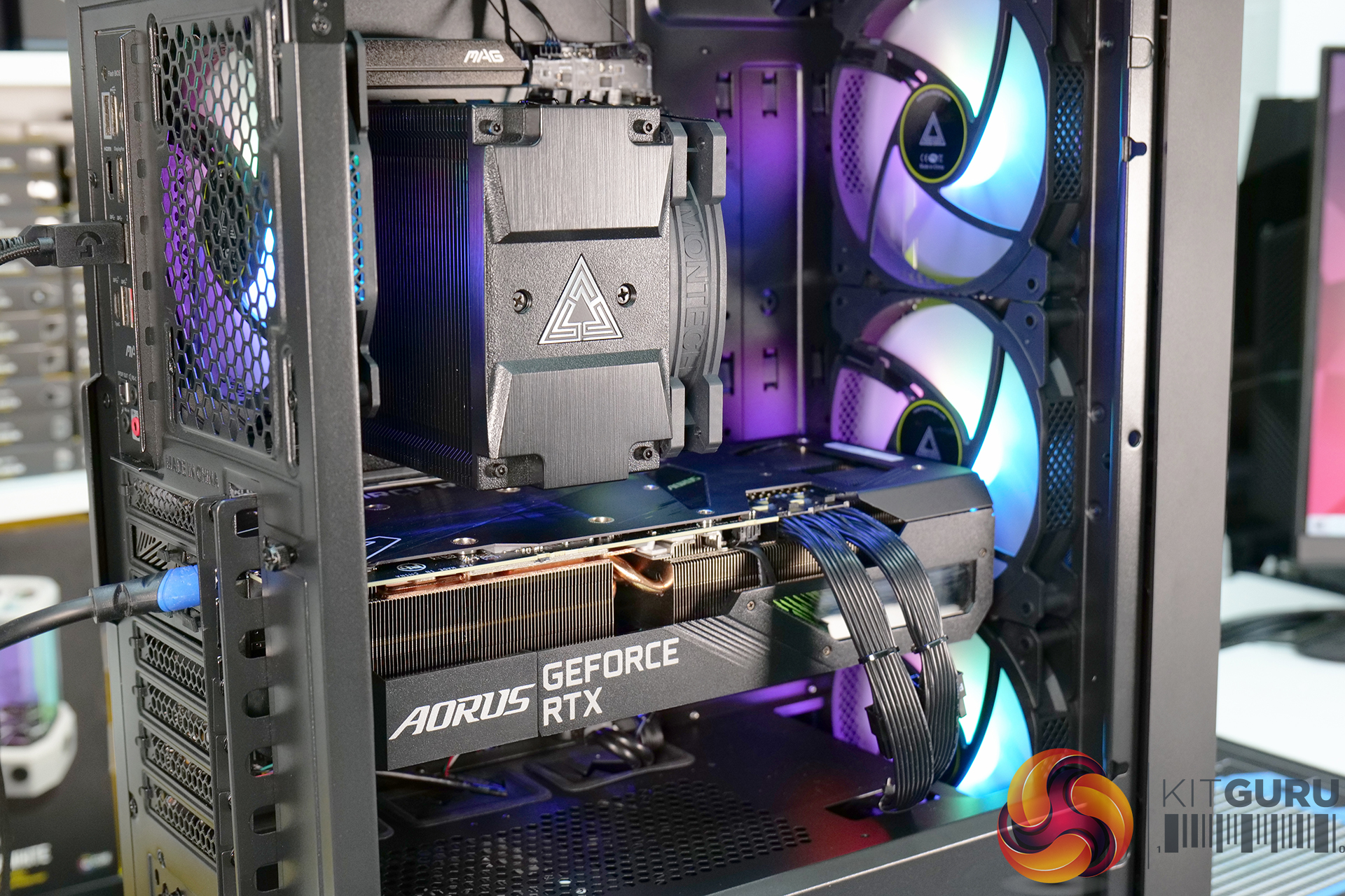 During testing, only stock case fans are used unless otherwise specified. All water pumps (where used) are set to maximum RPM, CPU cooler and system fans are set to a fixed RPM by the Motherboard software/BIOS.