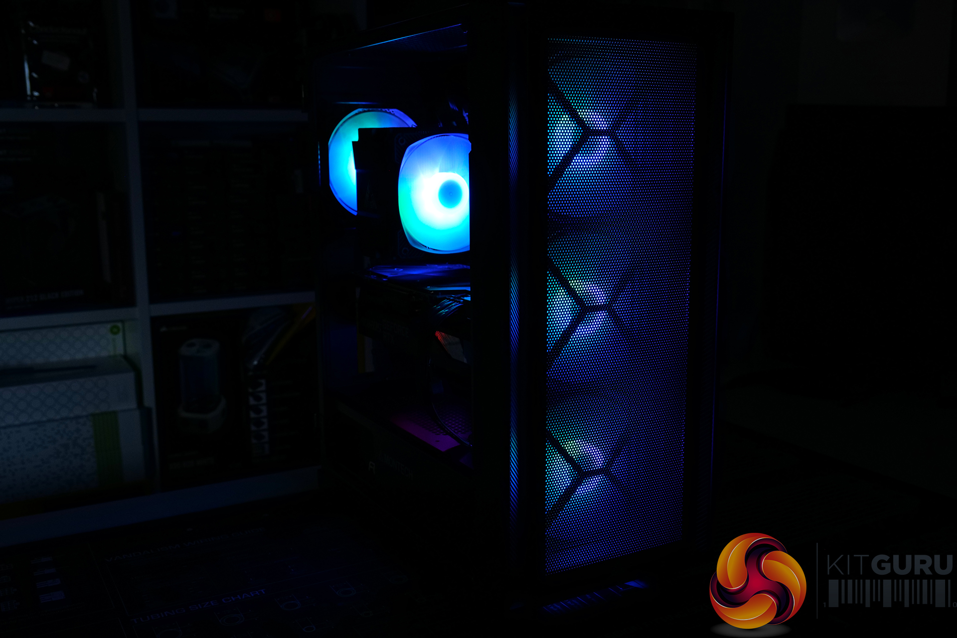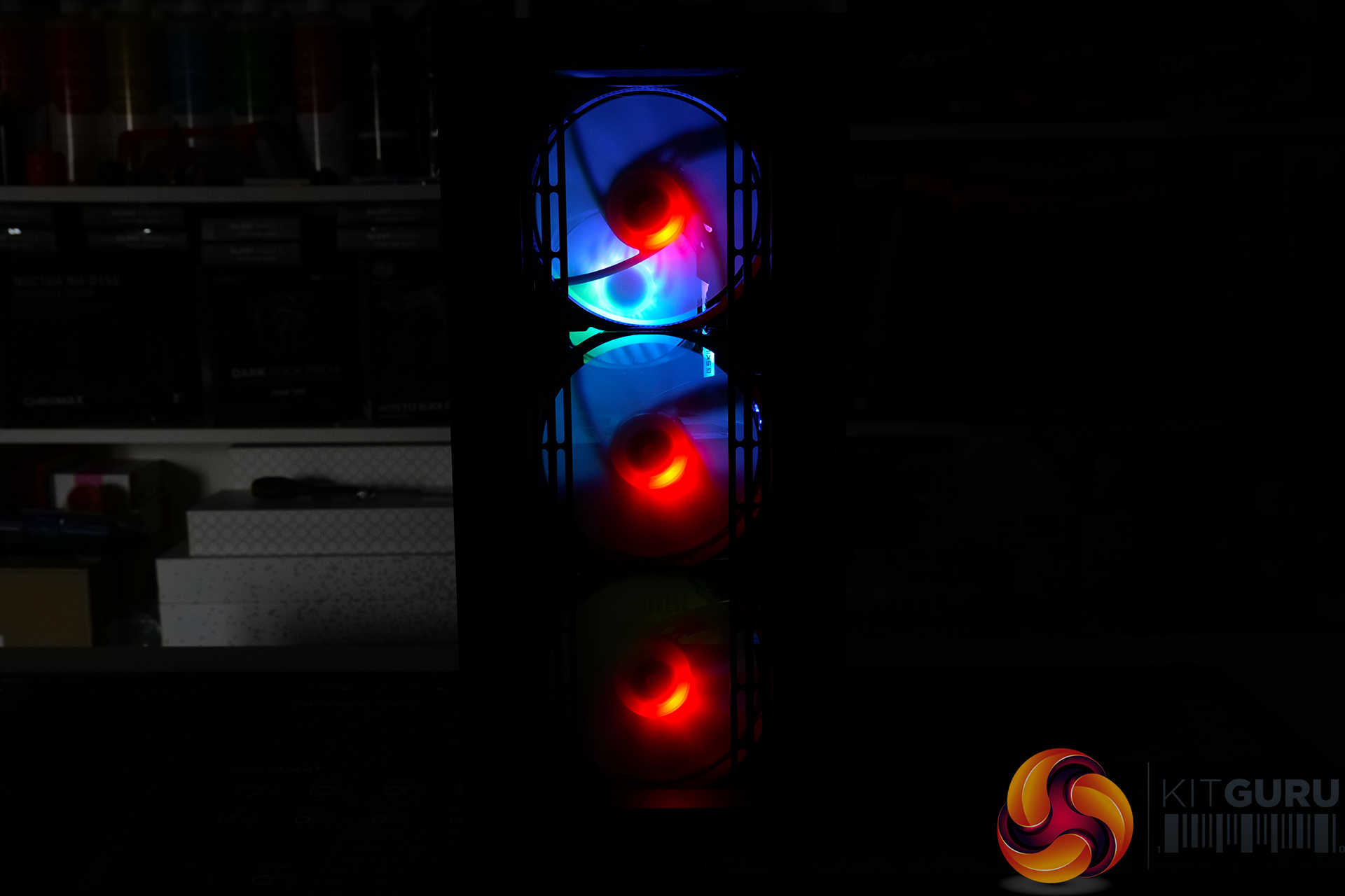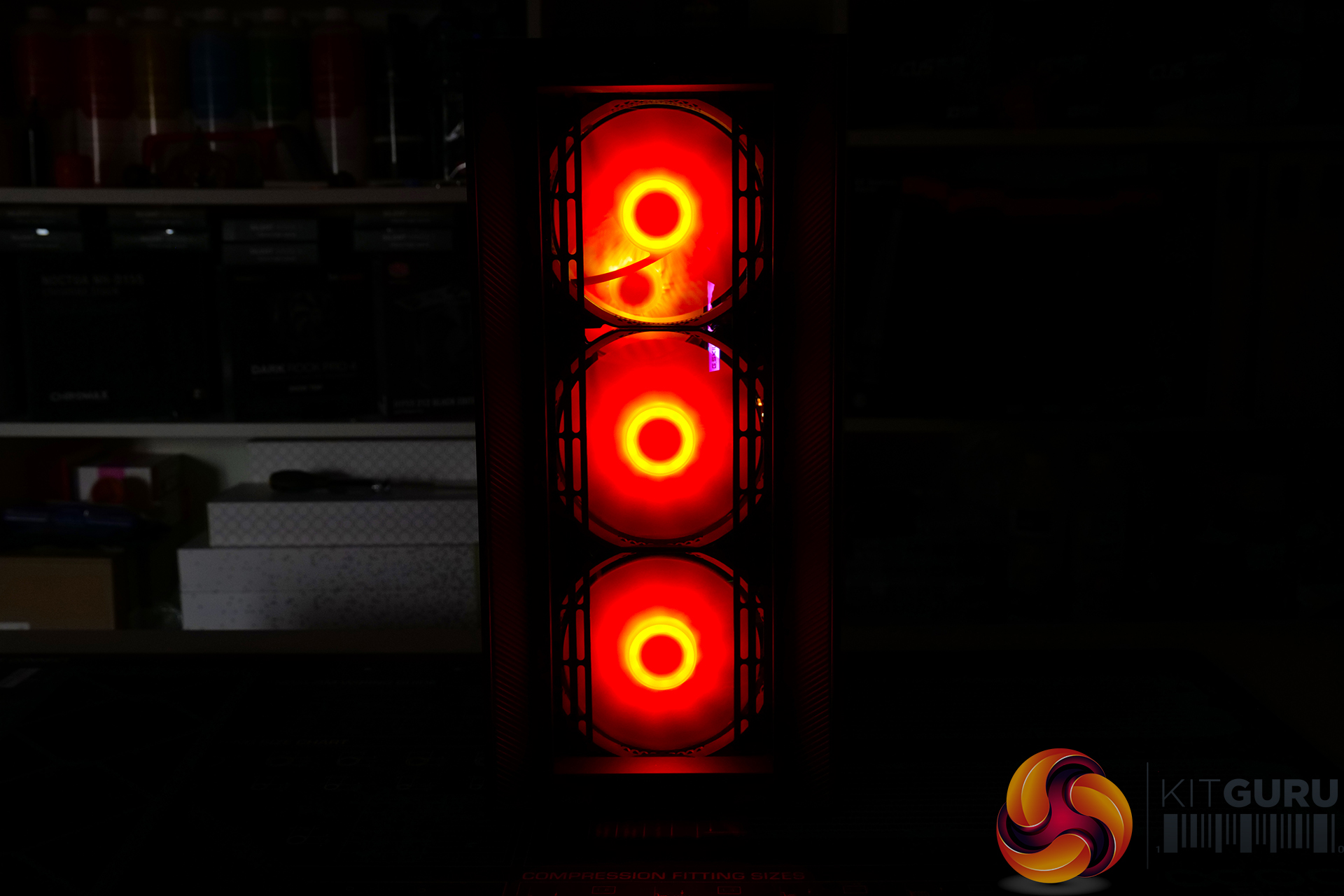 It is a similar theme when it comes to noise output too. In either configuration, the noise output of the system remains pretty constant at around 48dBA under load, which isn’t too distracting. It is also worth mentioning that when the fans are set to a profile or curve and the RPM drops at idle, the stock case fans run very quiet.