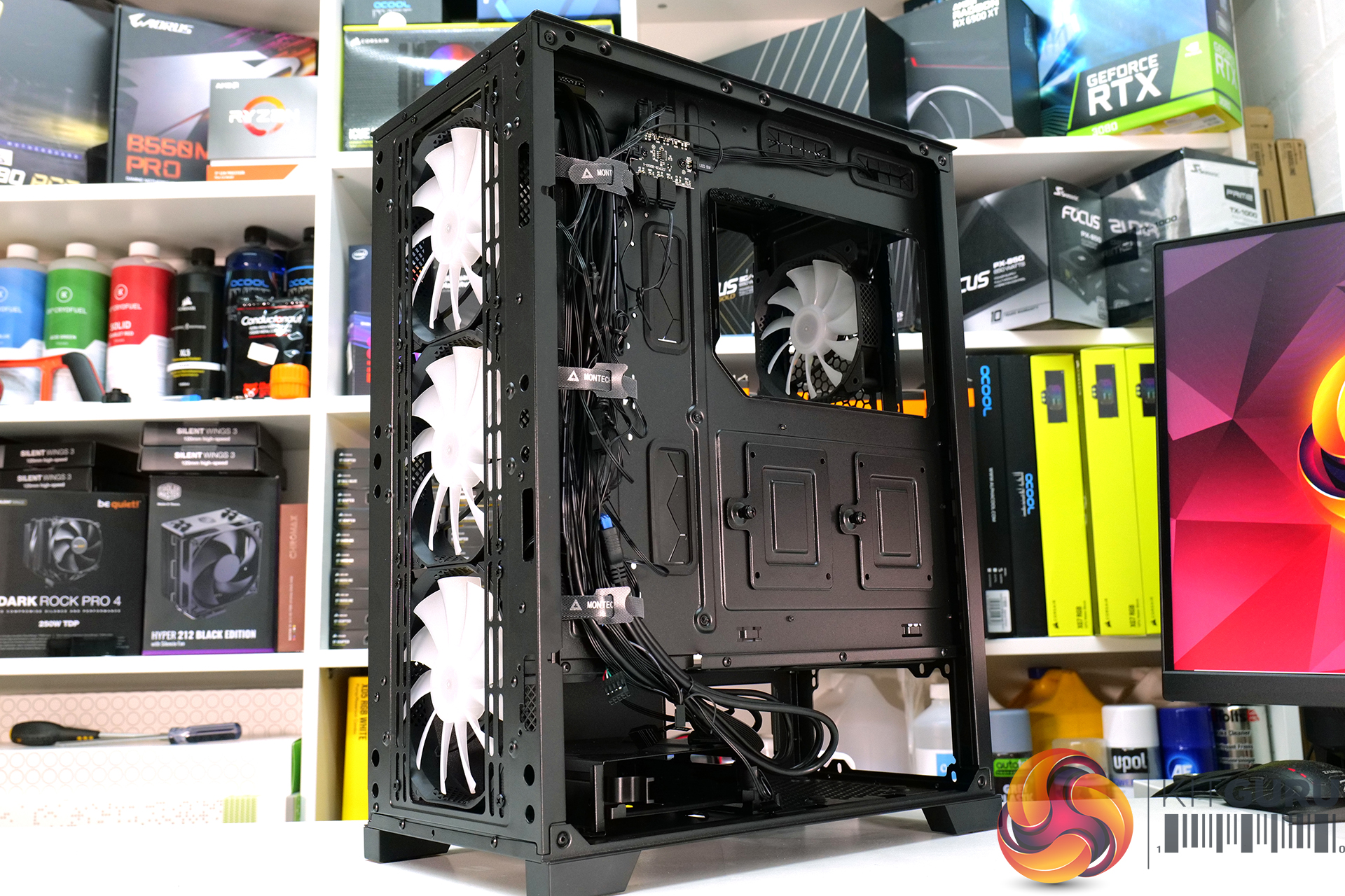 On a whole, cable management is very good. There are plenty of cut-outs to pass cables through and almost all have rubber grommets. Around the right-hand side of the chassis the cable management channel works well, all the important cables could be routed here and the pre-installed Velcro straps made cable management a breeze. A couple more eyelets could have been added to the right side of the motherboard tray (for EPS) but overall cable management went well.