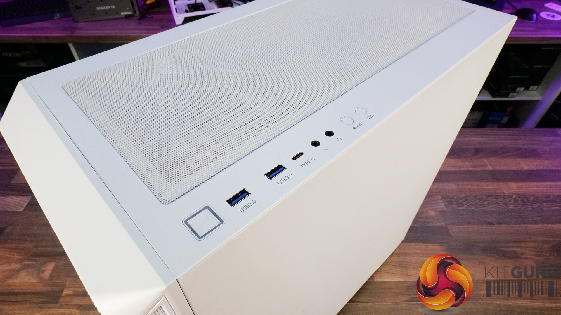 - Top-mounted front I/O connectivity consists of 2 x USB 3.0 Type-A ports, 1 x USB Type-C port, 2x 3.5mm audio jacks as well as power, reset and LED lighting control buttons.