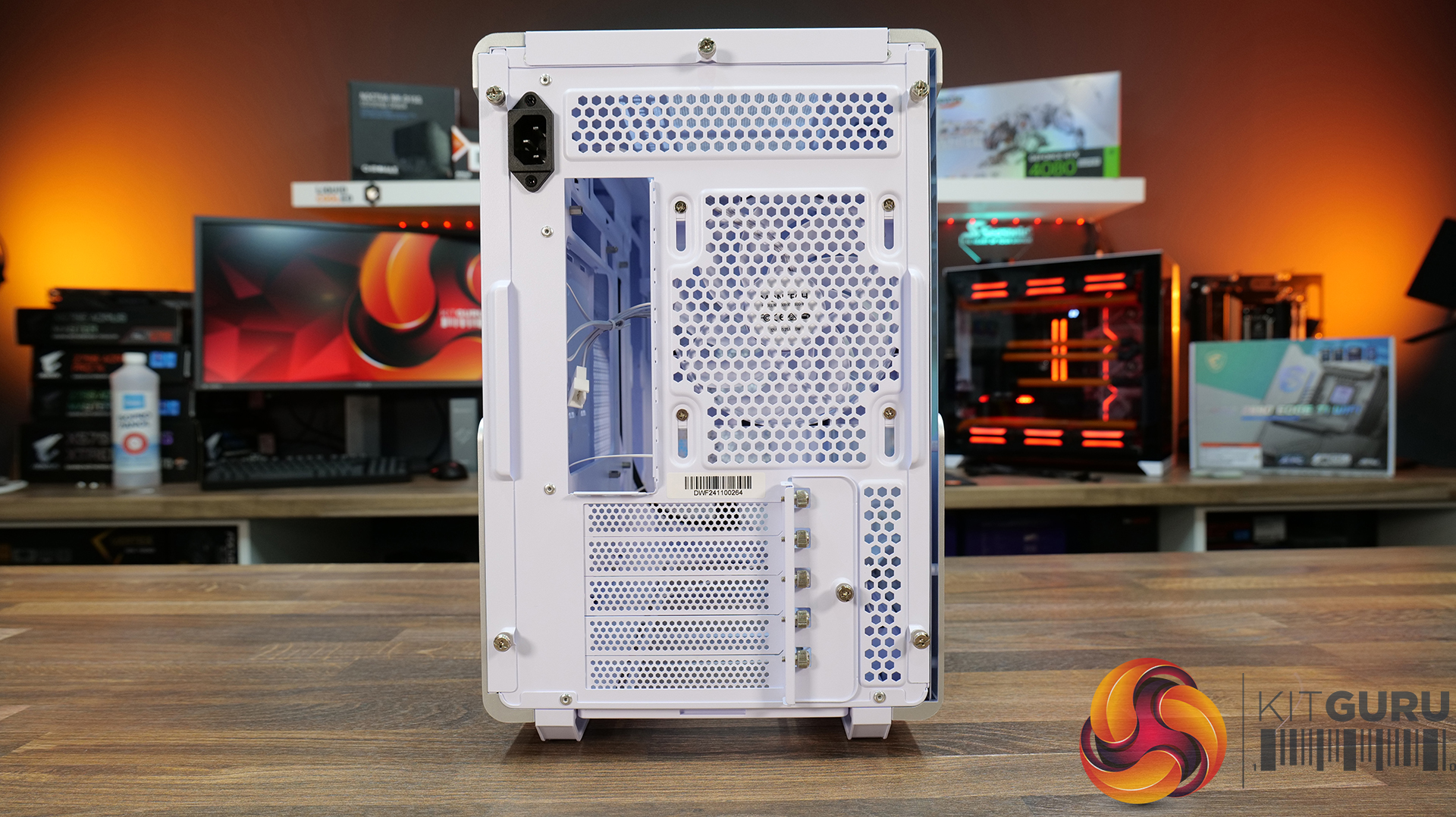 We tested the case thermals with a 360mm AIO CPU cooler installed in the roof and with the case in several different configurations. The default configuration shown in the charts is with a 360mm roof-mounted AIO, the stock case fans installed (3 x floor intake, 1 x rear exhaust) and all case panels fitted.