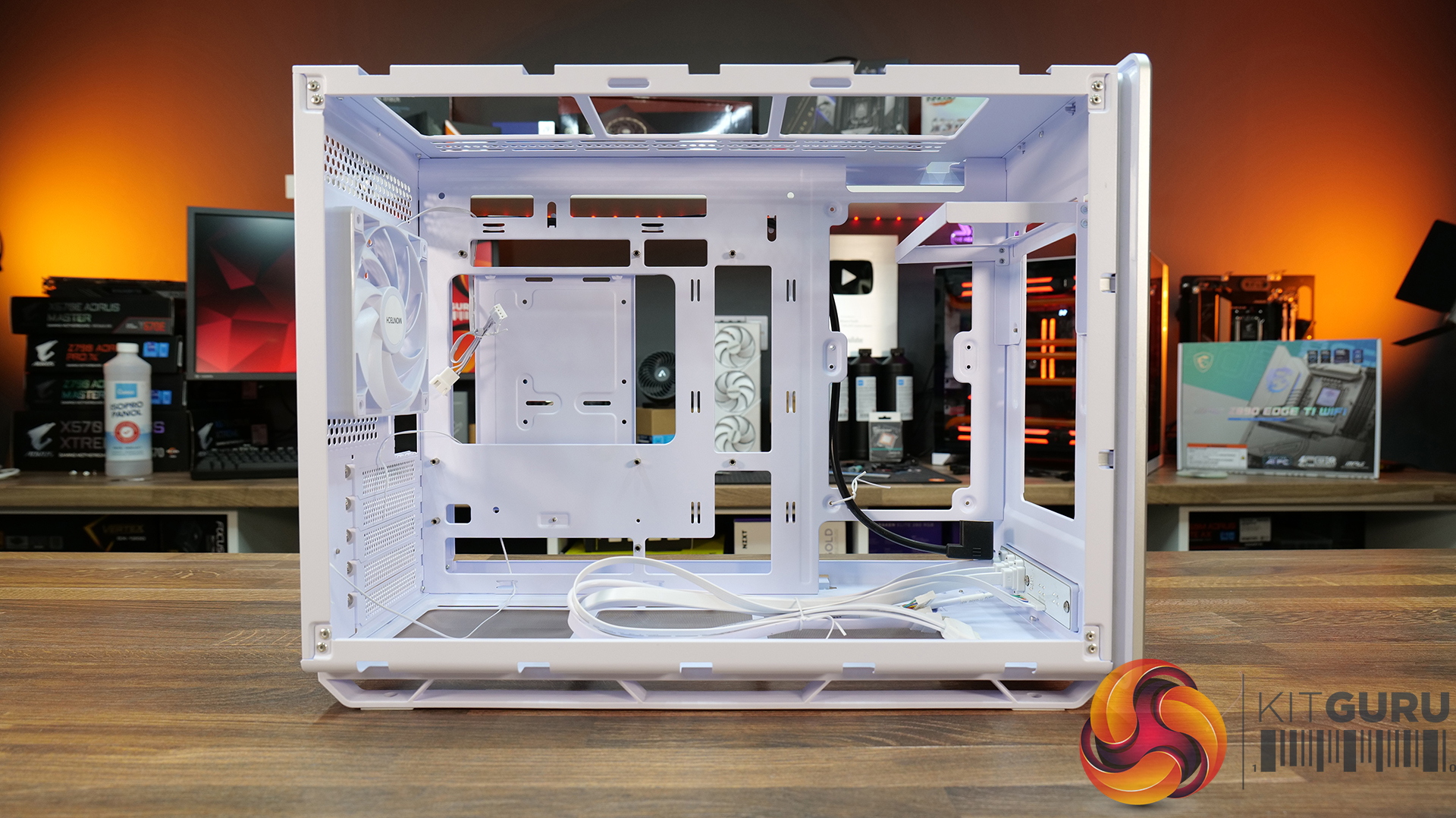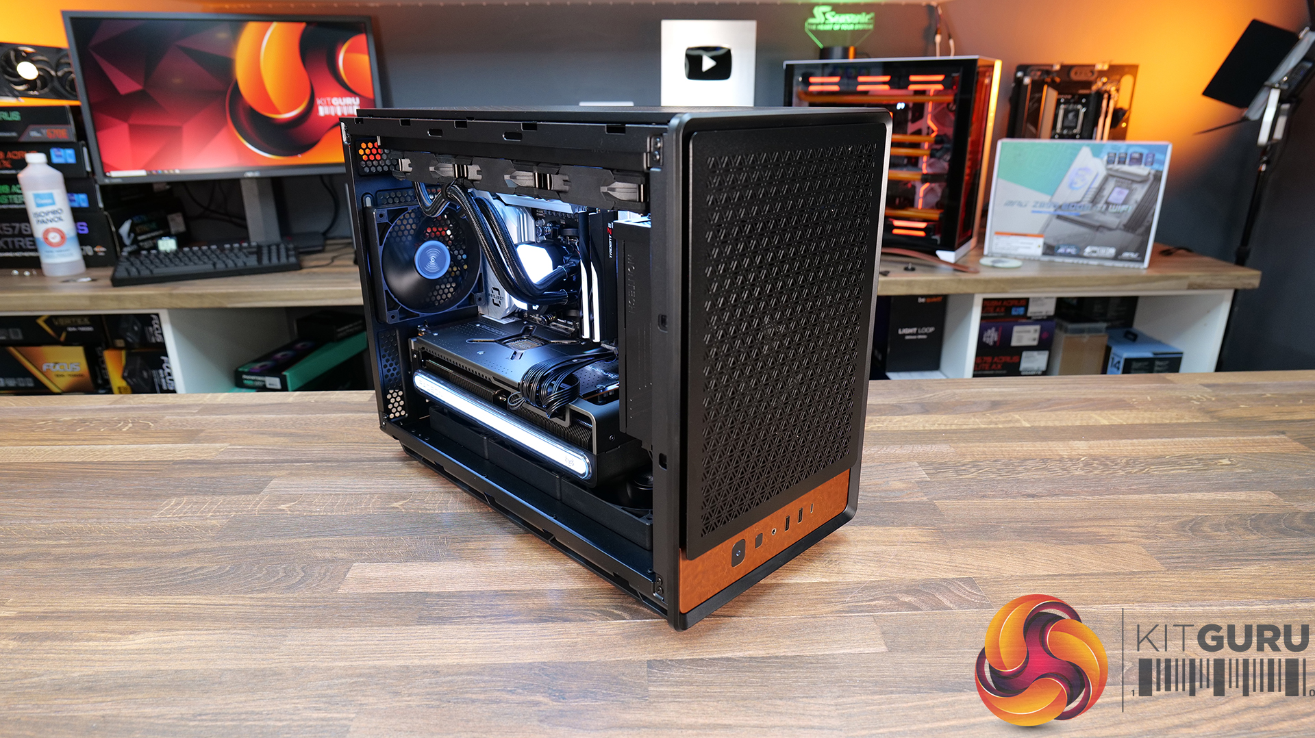 Thermal performance is measured with the case in various configurations, such as the default, with the tempered glass left-hand side panel removed and with the front panel removed to see how these configurations affect the CPU and GPU temperature. During testing, only stock case fans are used unless otherwise specified. All water pumps are set to maximum RPM and fans are set to a custom RPM curve by the Motherboard software/BIOS.