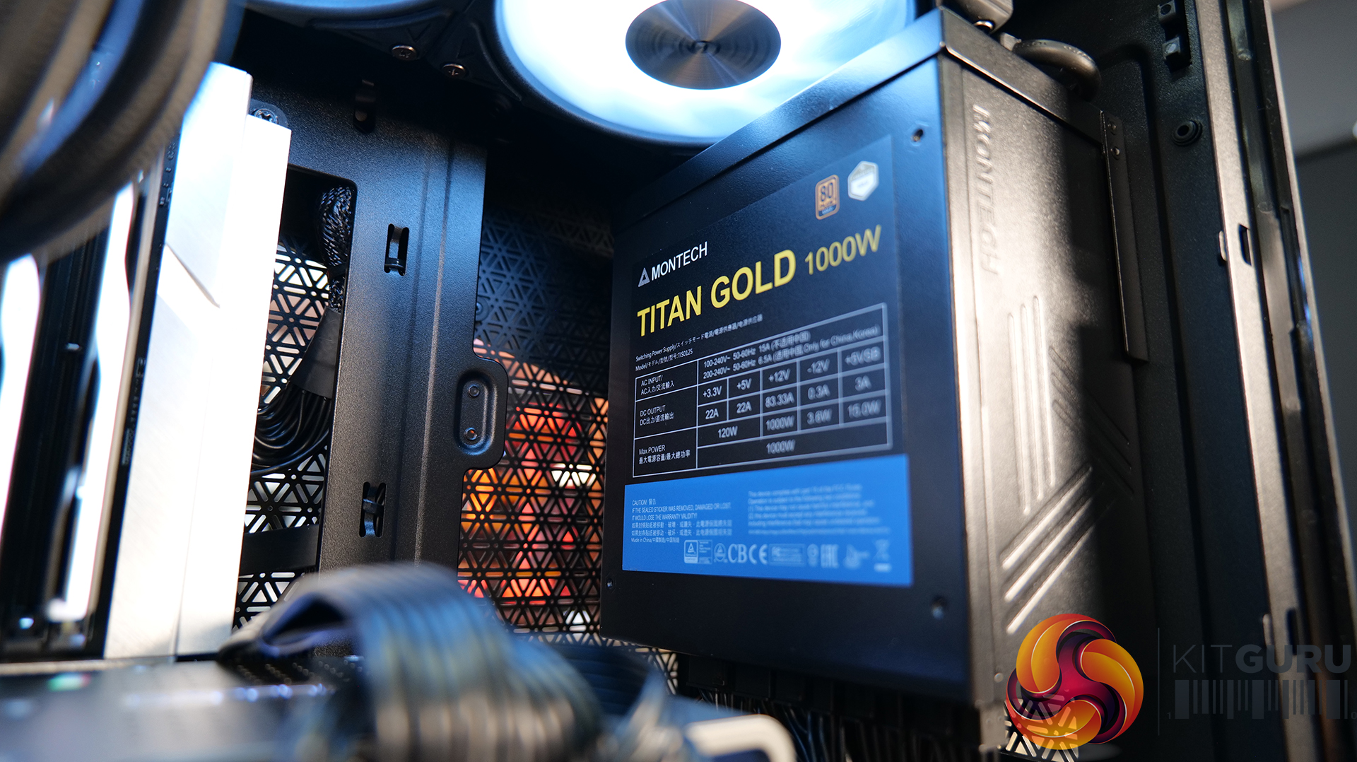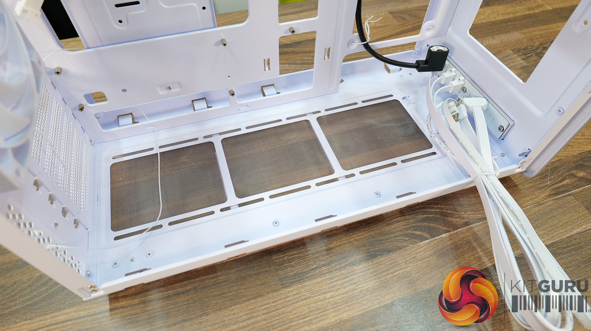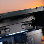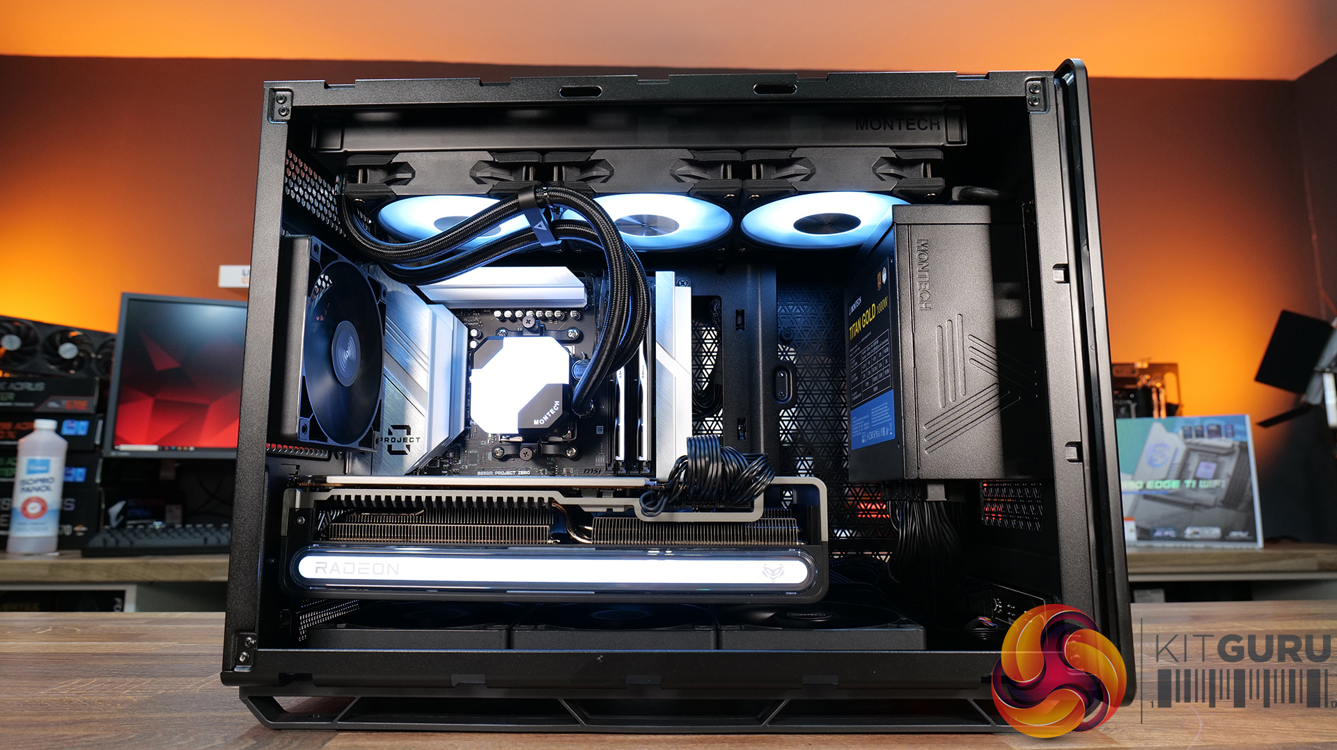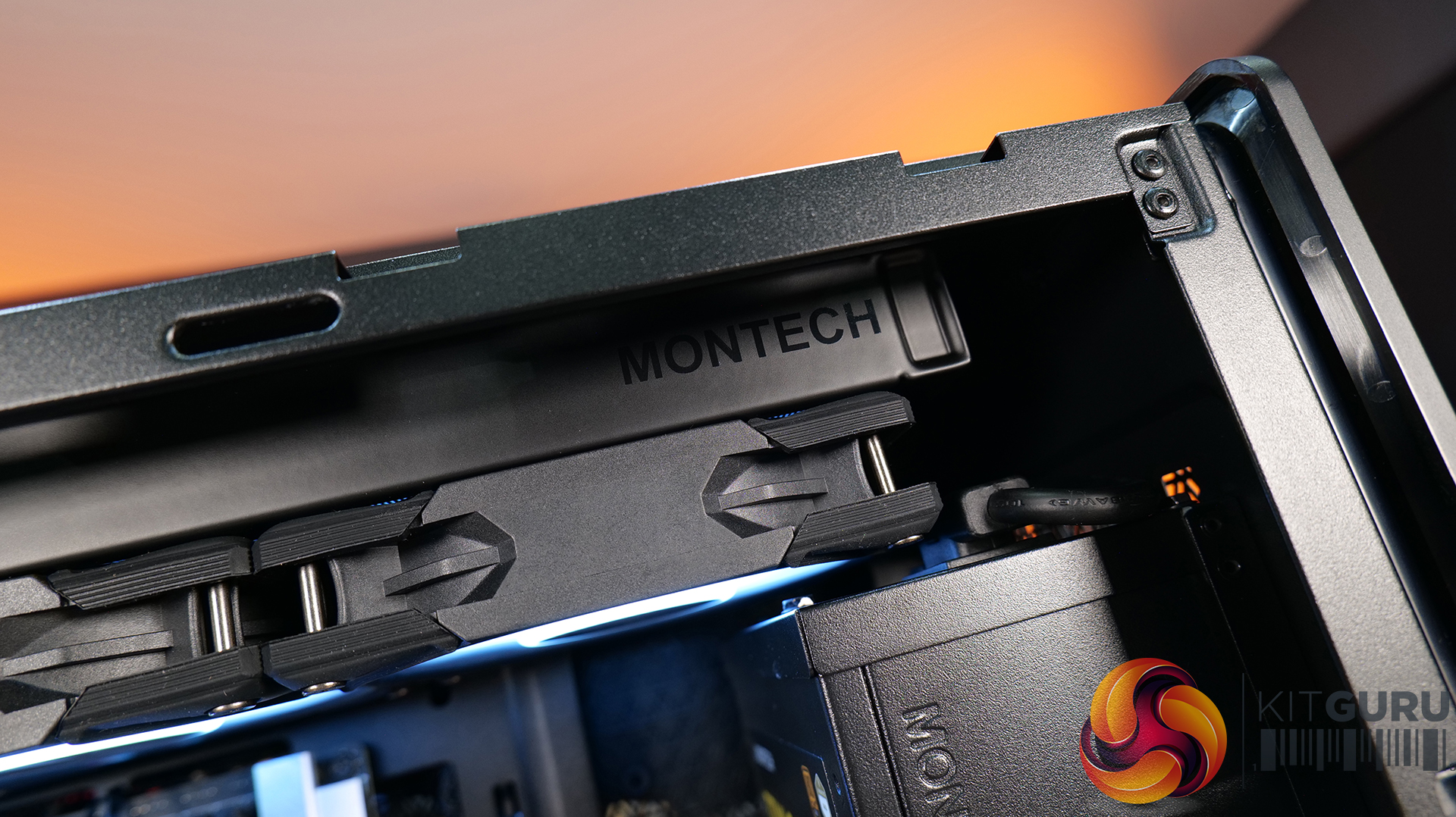 Bottom-mounted 120mm fans are a very tight fit if you are using an MSI Project Zero motherboard, in our test system the fans fouled the motherboard which could cause some issues with vibration and unnecessary noise; the choice of dust filter placement is very odd too. Montech has put filters in places where they are not needed like the top panel and left them out where they would be useful like the front and side vents. The plastic feet are not great quality either and have a lot of flex.