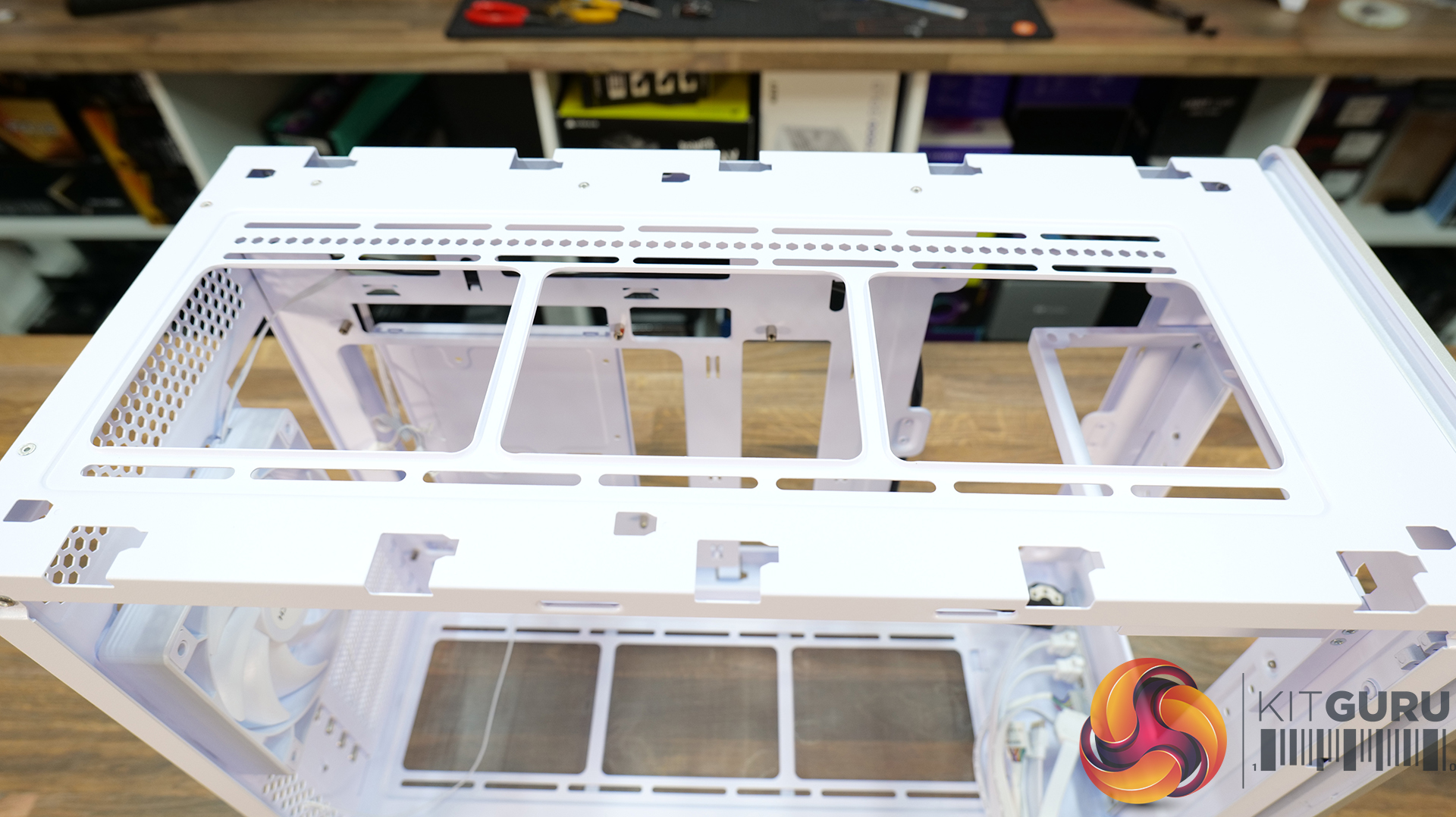 Disabling bottom intake fans increases noise as the AIO fans have to ramp up higher in this configuration to keep CPU temperature controlled. Removing the glass side and top panels increases noise under load too so they offer some noise dampening when fitted to the case. But the optimal configuration for noise is the default, with bottom intake fans, no side fans and all case panels fitted which is the preferred configuration for thermals too.