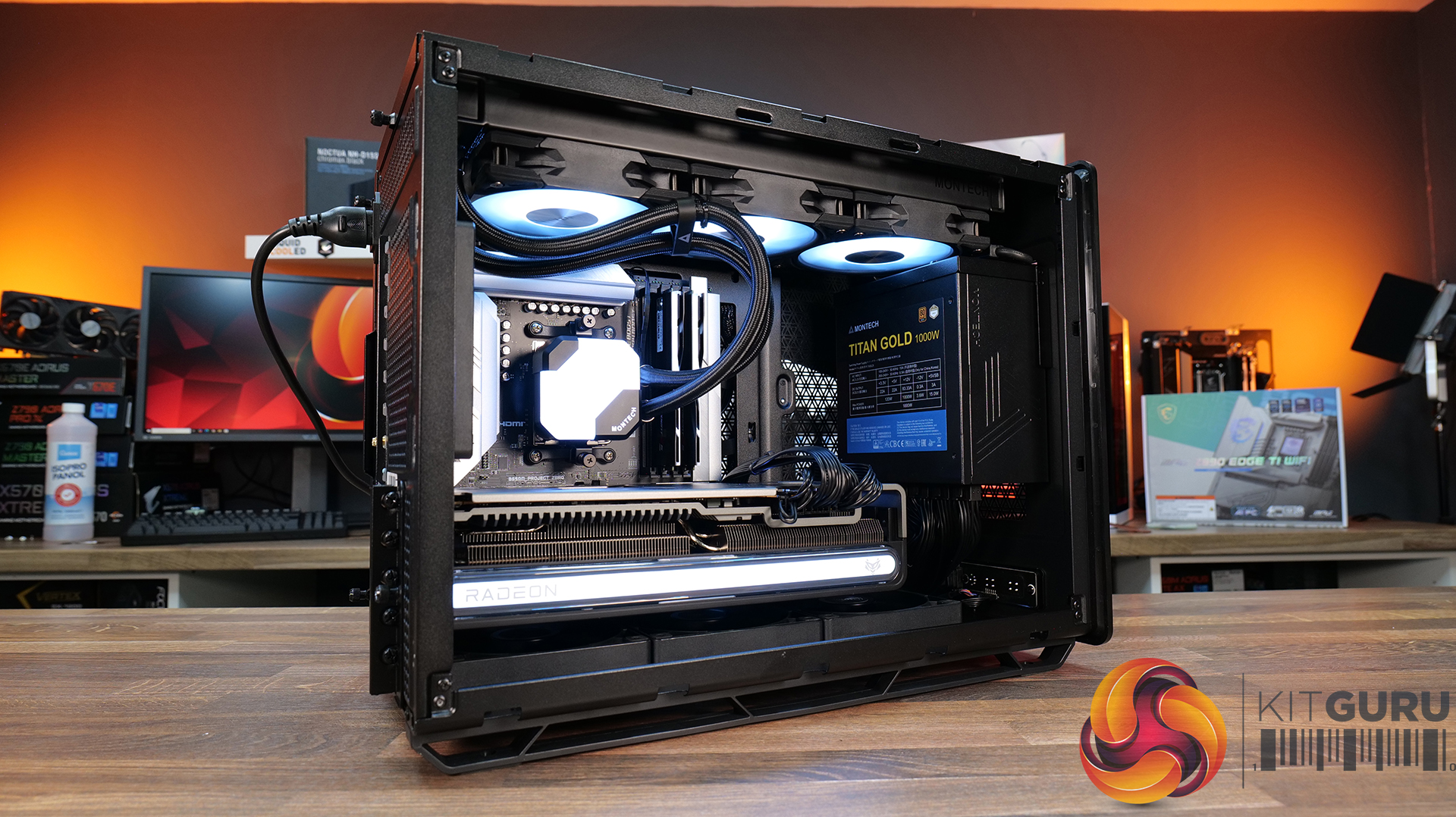 However, the build quality of the rest of the case seems up to Montech’s usual high standard, the cooling in the default configuration works well, GPU temperature is particularly good and it supports high spec hardware including big graphics cards, 360mm radiators, up to nine 120mm fans and ATX power supplies. But the stock fans that come with the Heritage Pro are a bit loud, the accessory handle isn’t great, so if you are planning on buying this case I would recommend going for the standard (cheaper) version and adding your own quieter fans.