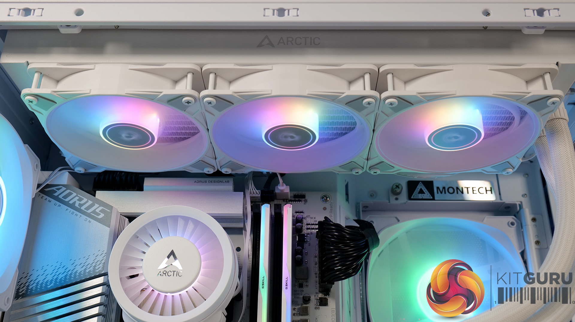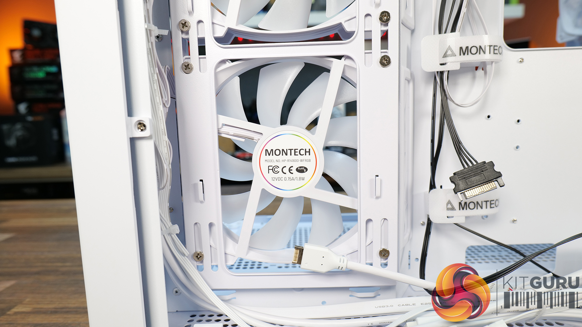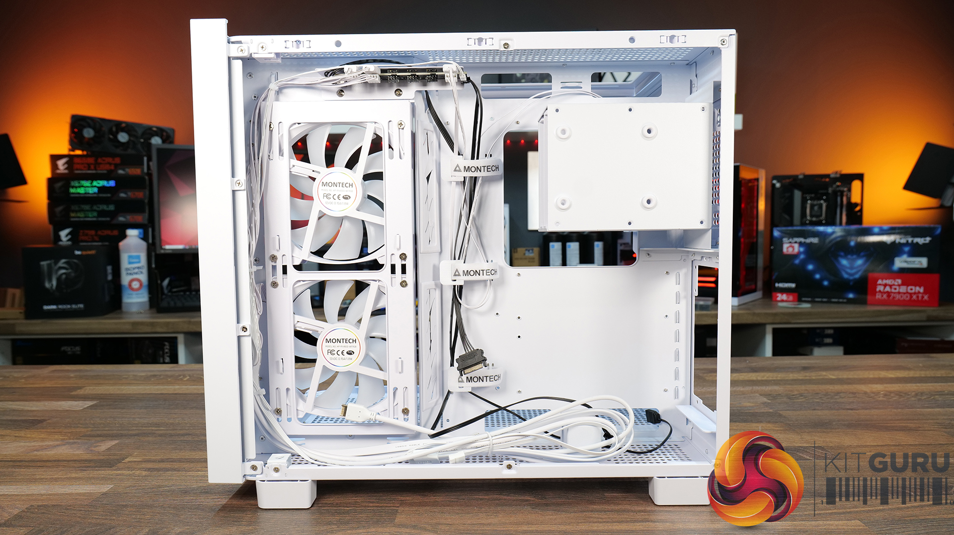 There is very little change in both CPU and GPU temperature when removing the glass side panel or the top and right-hand side mesh, but adding three 120mm bottom intake fans drops the GPU temperature by a couple of degrees. However this isn’t enough to produce any performance gain so the default configuration, as the case is shipped by Montech, is great for keeping high spec components cool.