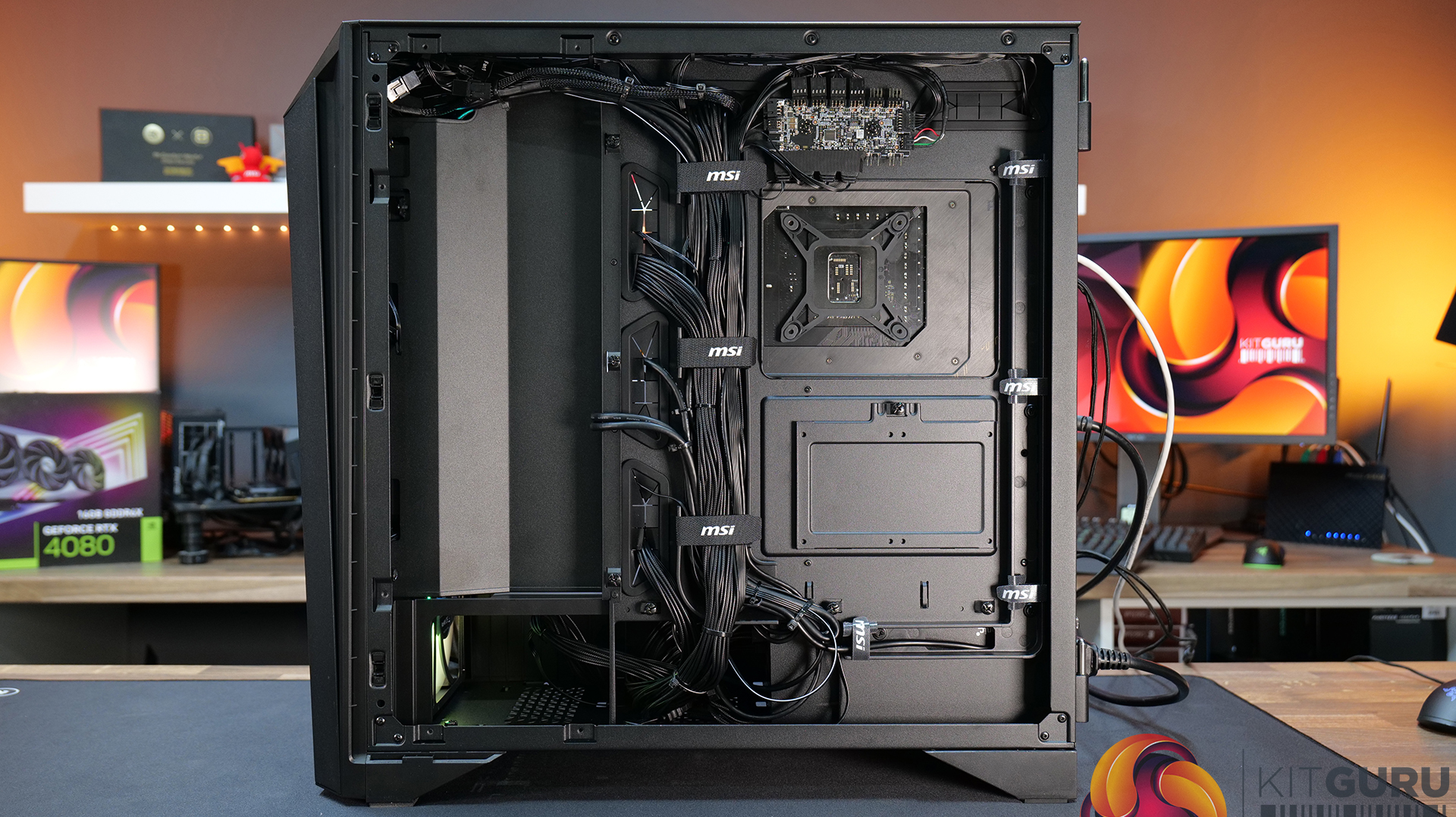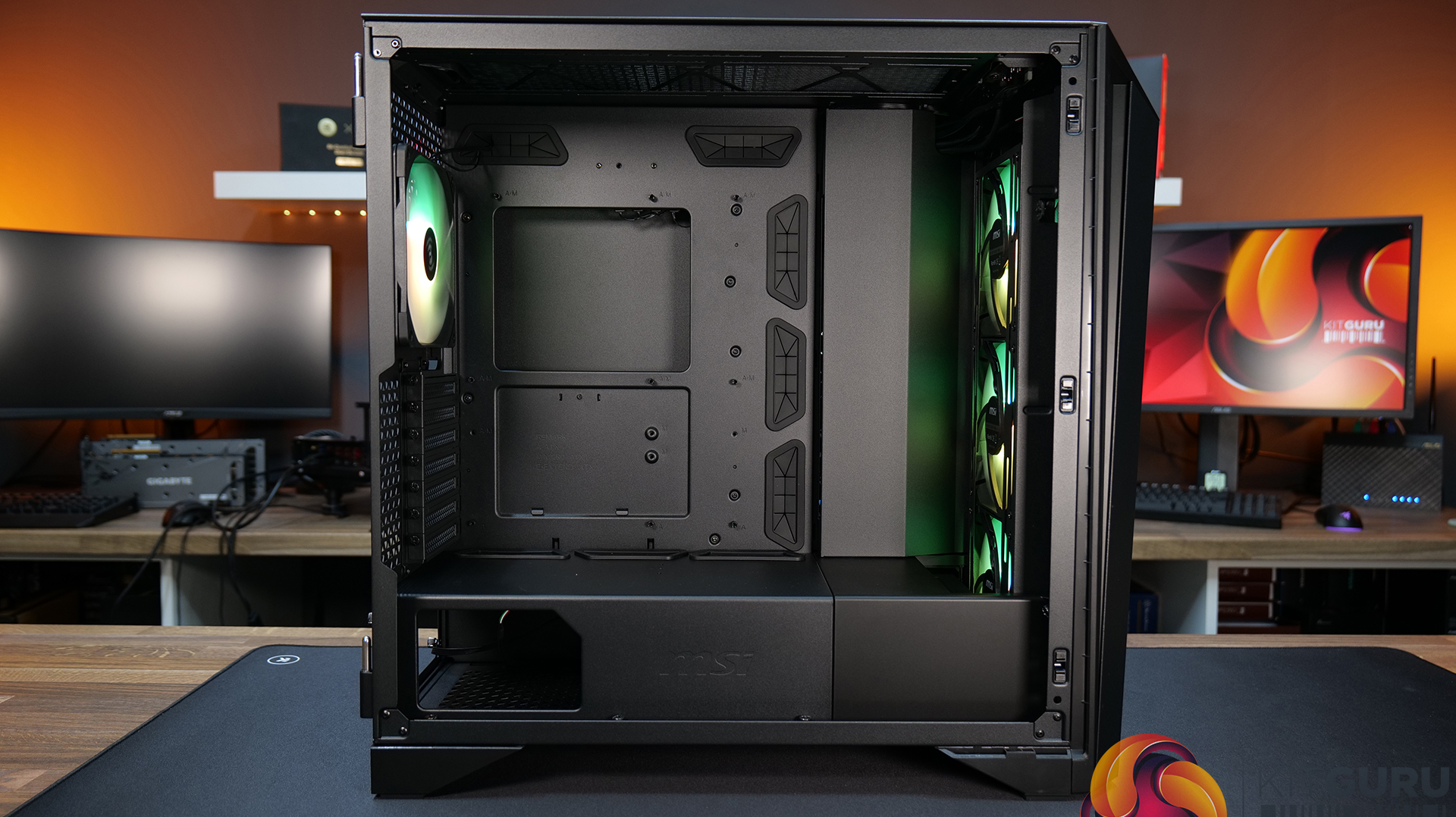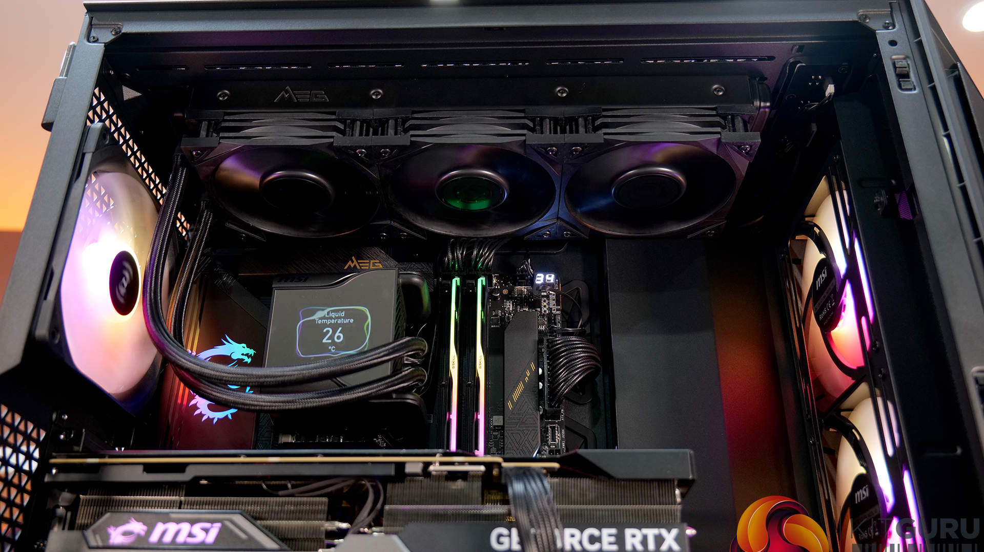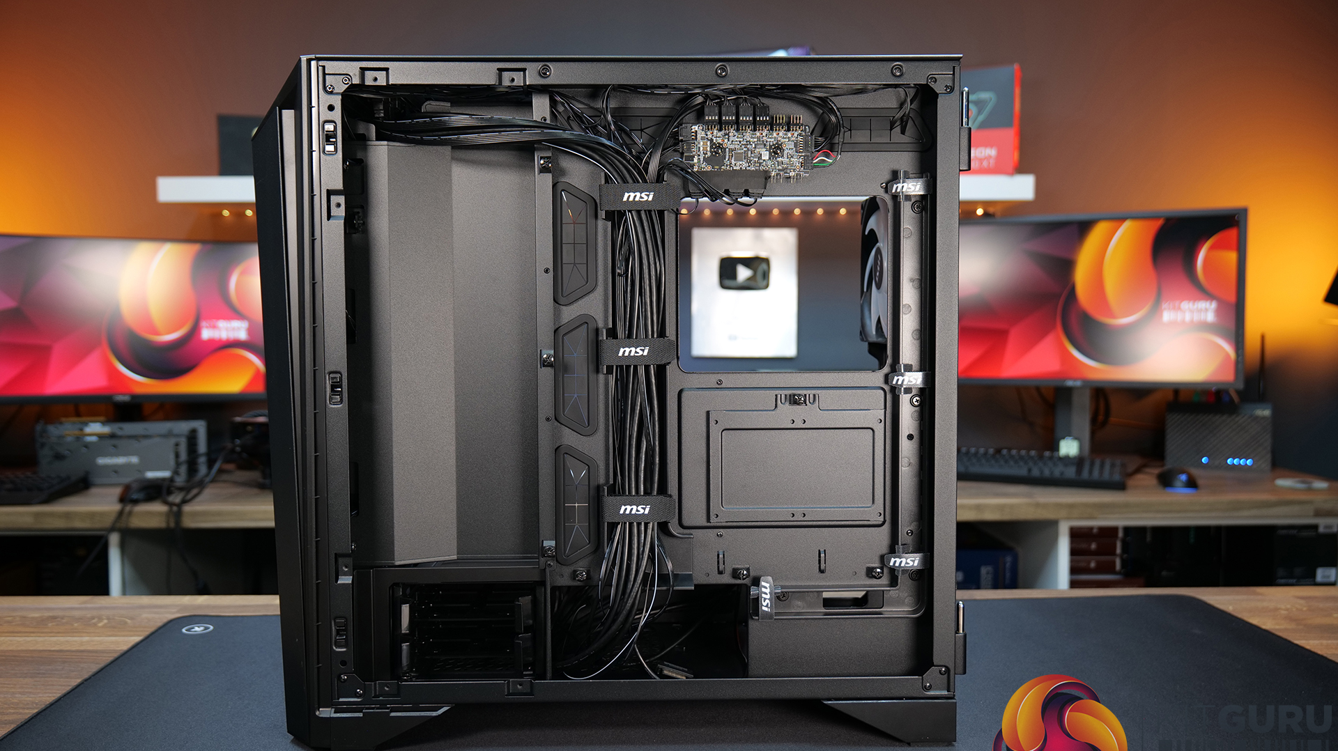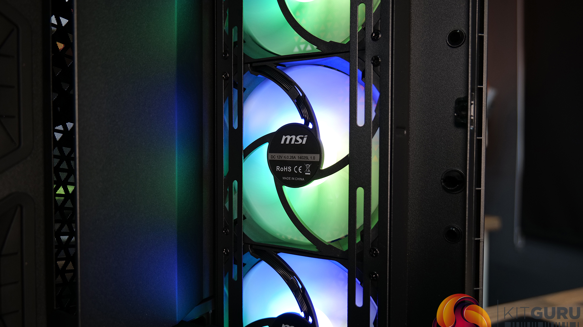 Airflow and cooling performance were very strong during our testing and the included MSI 140mm ARGB fans are quiet and provide good airflow through the chassis. Setting the fan speed via the touchscreen panel to 40% duty cycle meant the fans ran at around 800 RPM which is enough to create decent airflow and operation is virtually silent. Thermal performance is excellent too, the mesh front and top panels work well and keep our high-end test system cool.