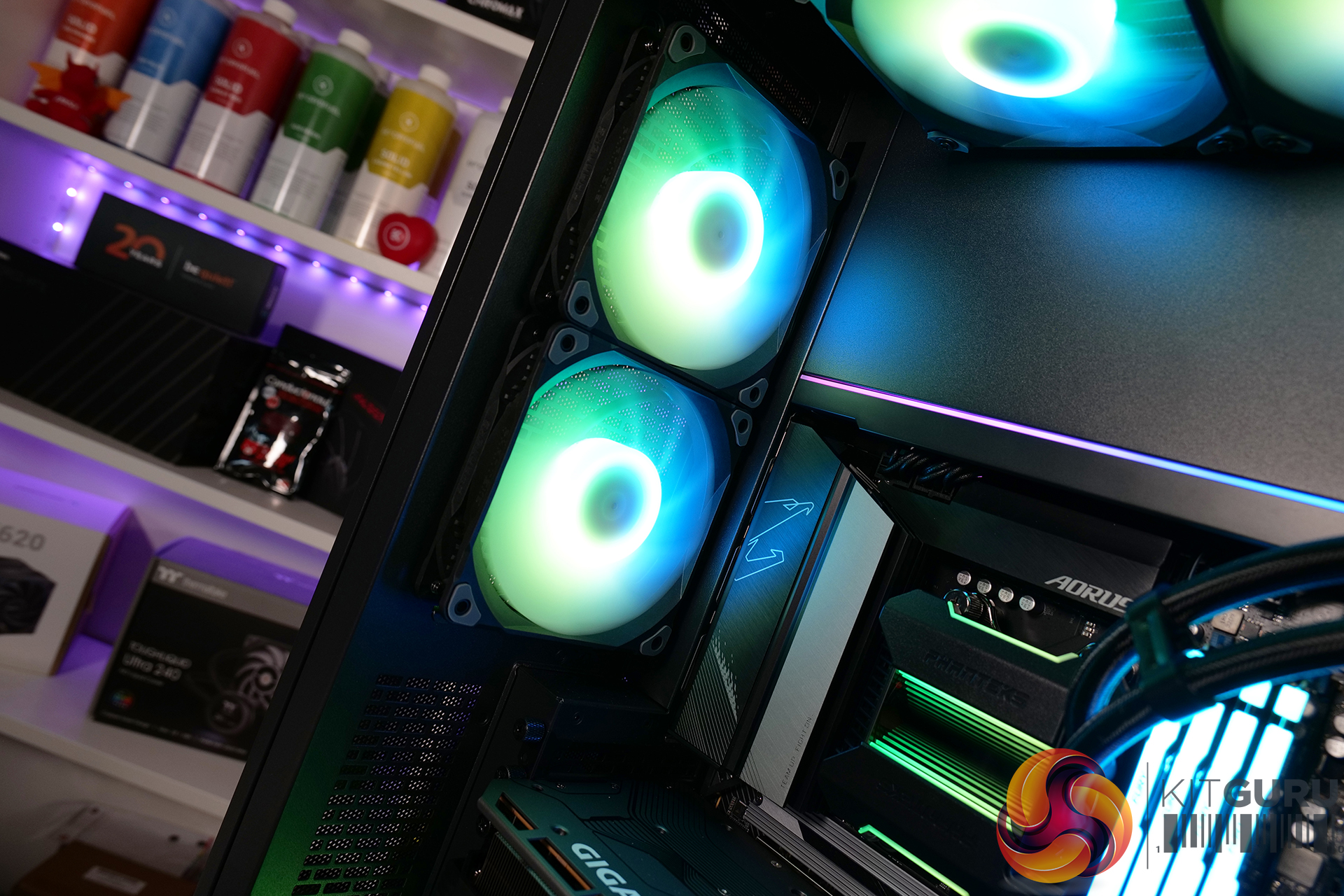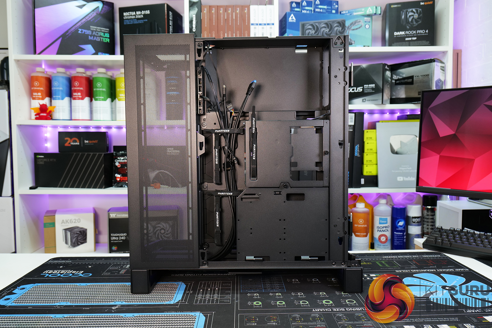 Thermal performance is measured with the case in various configurations, such as the default, with the tempered glass left-hand side panel removed and with the front panel removed to see how these configurations affect the CPU and GPU temperature. During testing, only stock case fans are used unless otherwise specified. All water pumps are set to maximum RPM and fans are set to a custom RPM curve by the Motherboard software/BIOS.