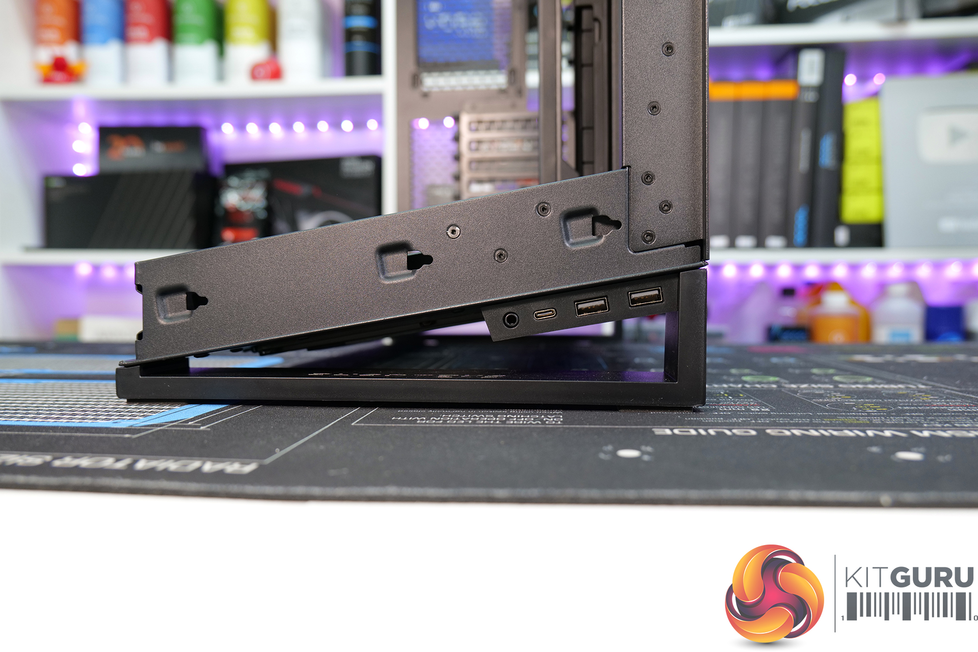 - A front I/O panel featuring two USB Type-A ports, a single USB Type-C port and a 3.5mm audio jack is removable and can be repositioned at the rear of the chassis.