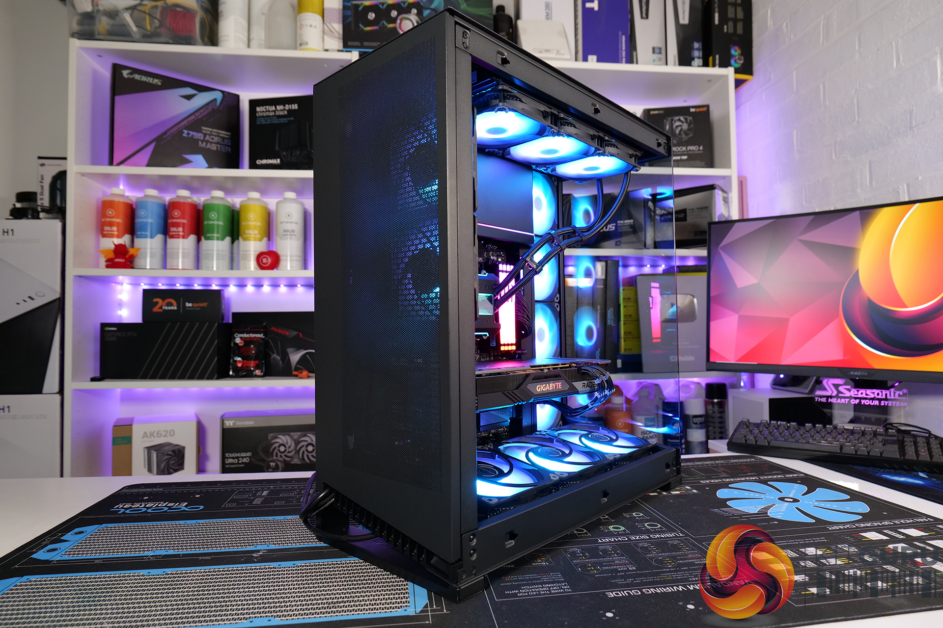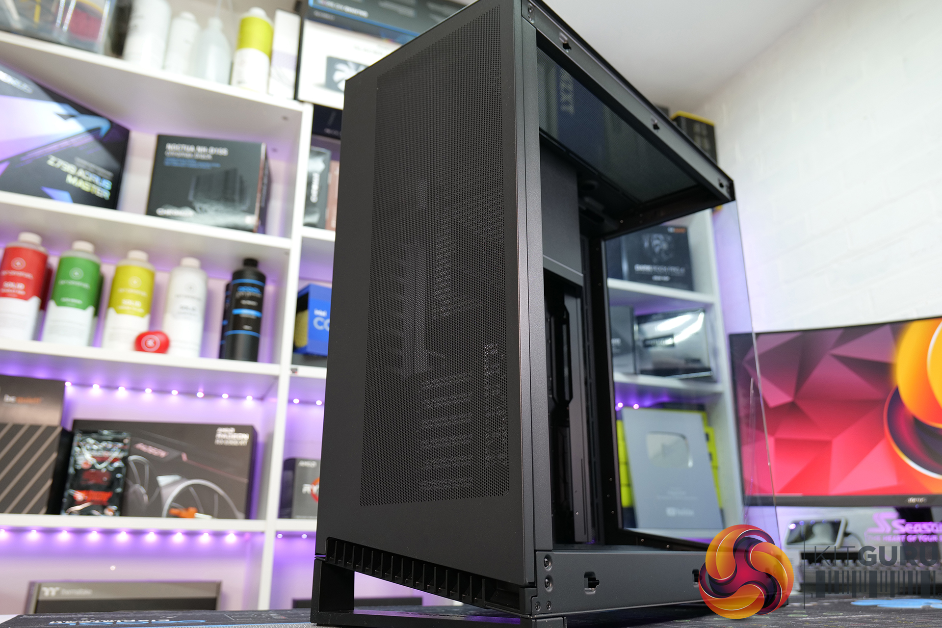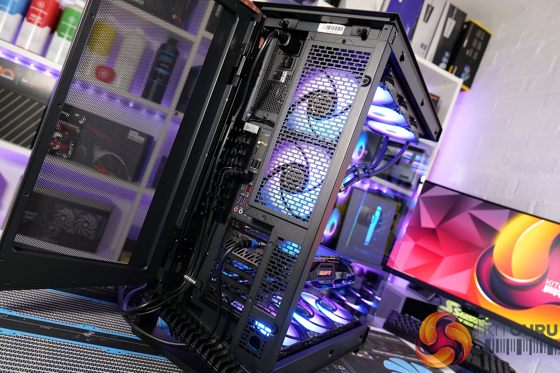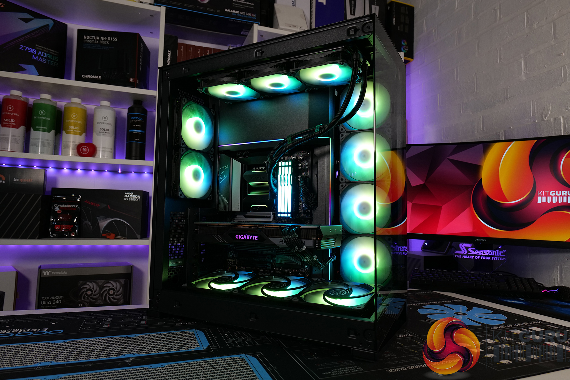With this bottom airflow configuration and a closed tempered glass front, thermal performance is up to scratch, if anything the GPU temperature seems better than in a conventional-style ATX case which is great news. But we did add 12 fans to the system, including three 140mm fans blowing directly up at the GPU so it’s not a huge surprise that the system ran cool under load.
