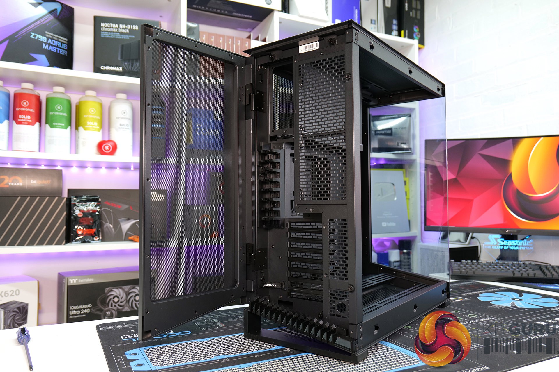 - A very beefy frame design using up to 1.5mm thick steel structure produces a very strong and sturdy feel, even with the front and side glass removed the unsupported top corner feels rigid.