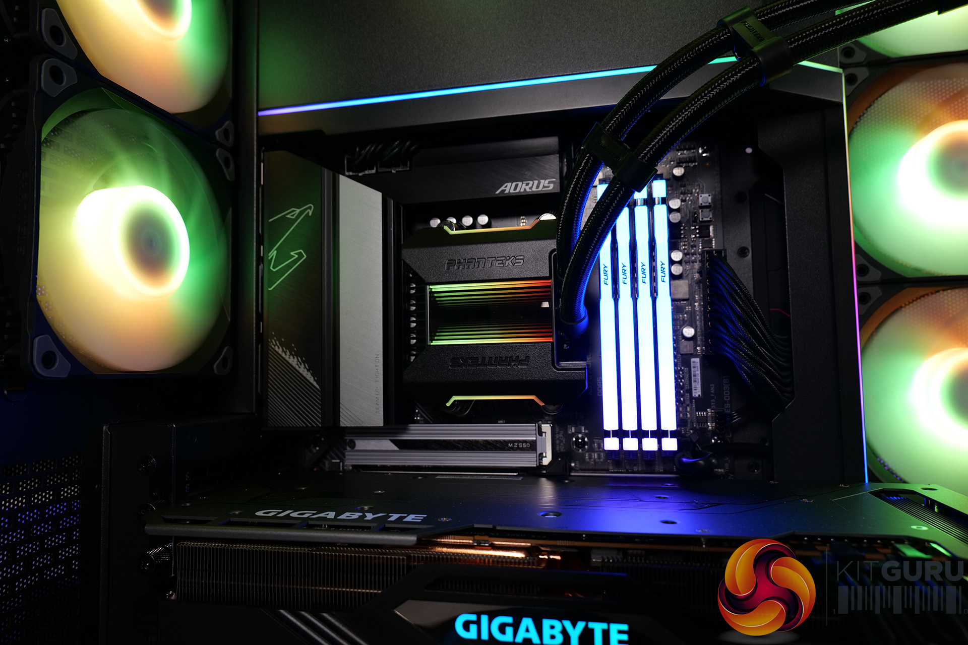 In terms of appearance, the Phanteks NV7 looks very nice indeed with the almost seamless tempered glass and hidden rear cable clutter. Adding good fans with RGB effects boosts visuals even more and creates a picture frame effect around the system. Build quality is up to and exceeds the usually Phanteks high standard, it’s a heavy and very sturdy frame, even when all panels are removed and some corners left completely unsupported the frame feels very rigid.