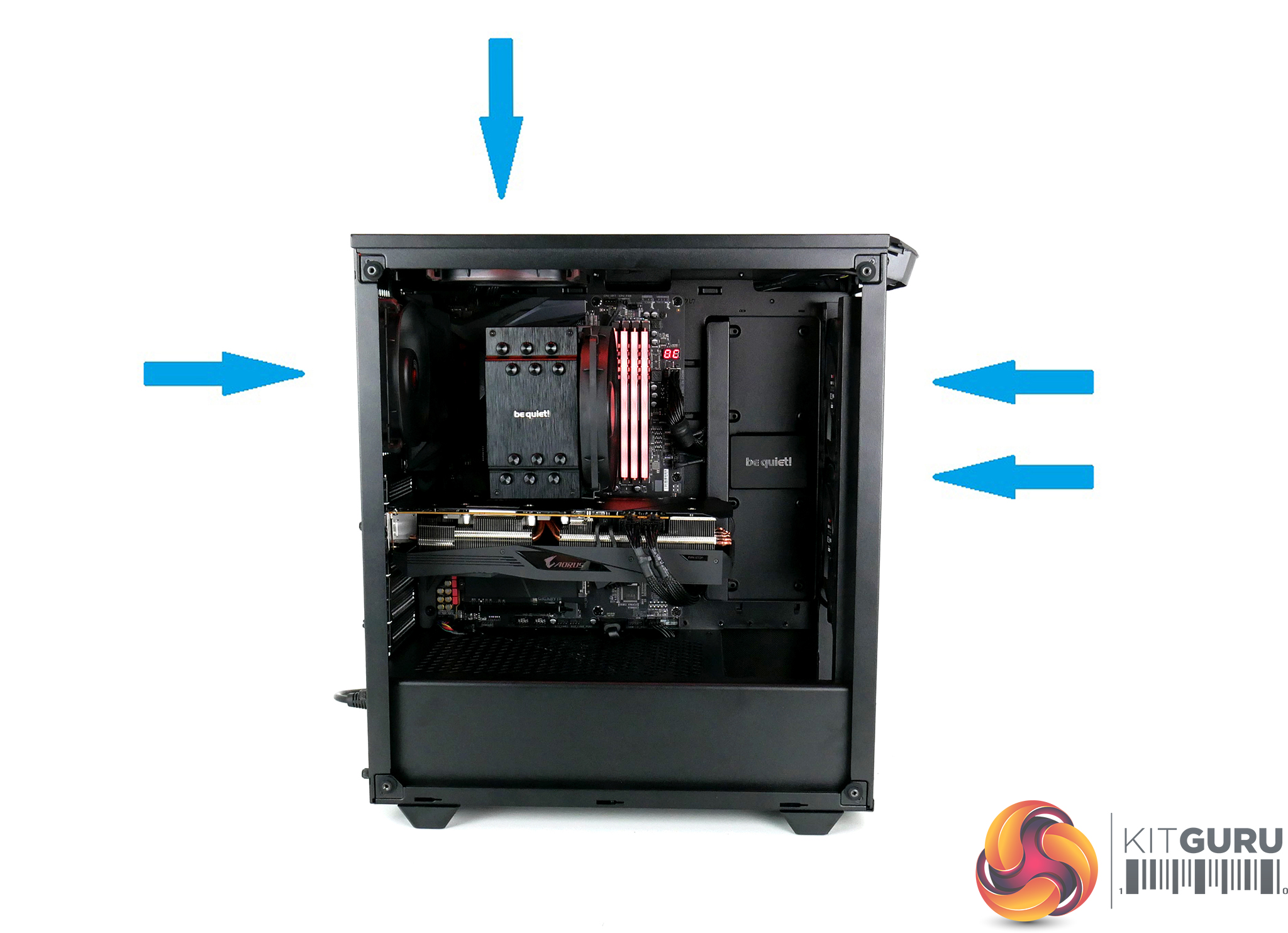 KitGuru says: If you are struggling with high system temperature or are thinking of building a system shortly, we hope this information will help you decide on the optimal airflow configuration. Choosing either a balanced, negative or positive pressure fan configuration should all yield good thermal performance results, with a configuration leaning slightly towards positive pressure being the best for dust build up inside the case.