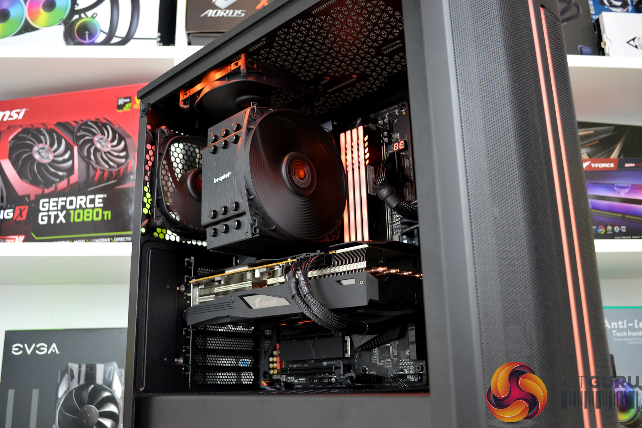 Sticking with a hint of orange to the theme of our build, the system will be based on the new AMD B550 platform in the shape of the B550 Aorus Master motherboard from Gigabyte, paired with an AMD Ryzen 5 3600X CPU, 16 GB of Aorus RGB memory and an Aorus RX 5700 XT graphics card. Powering the system is a be quiet! Straight Power 11 750W platinum power supply.