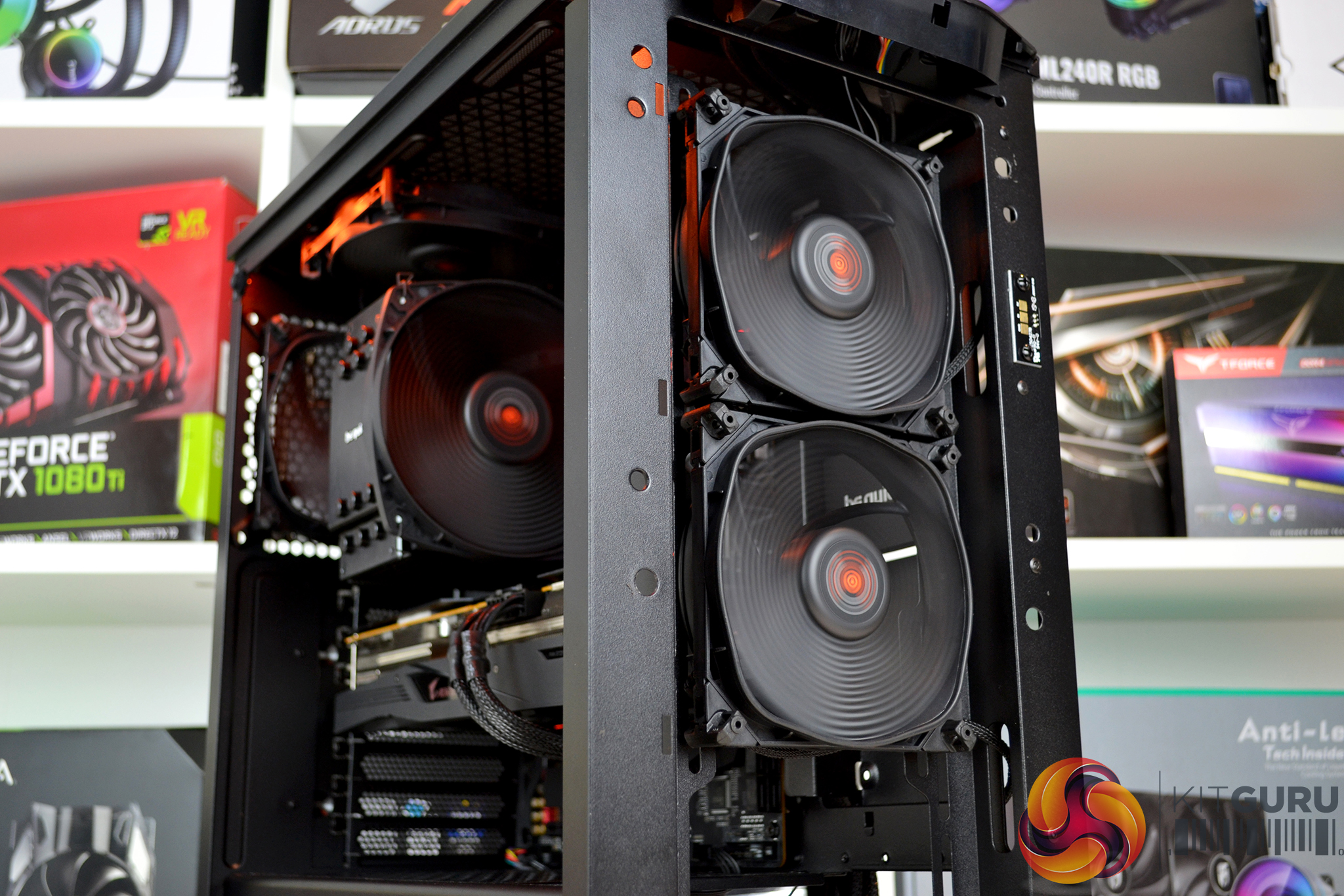 In this configuration, all four 120mm fans inside the case are set to exhaust so the only cool outside air being pulled into the system will come through any gaps such as the PCIe slots or other panel gaps around the case.