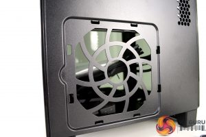There is also another cut-out in the bottom of the chassis to provide additional airflow to the graphics card, and the whole underside of the case is covered with a plastic mesh dust filter that is removable for cleaning and maintenance.
