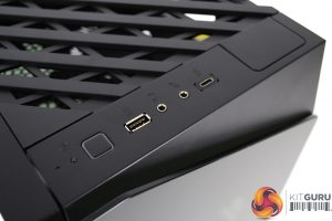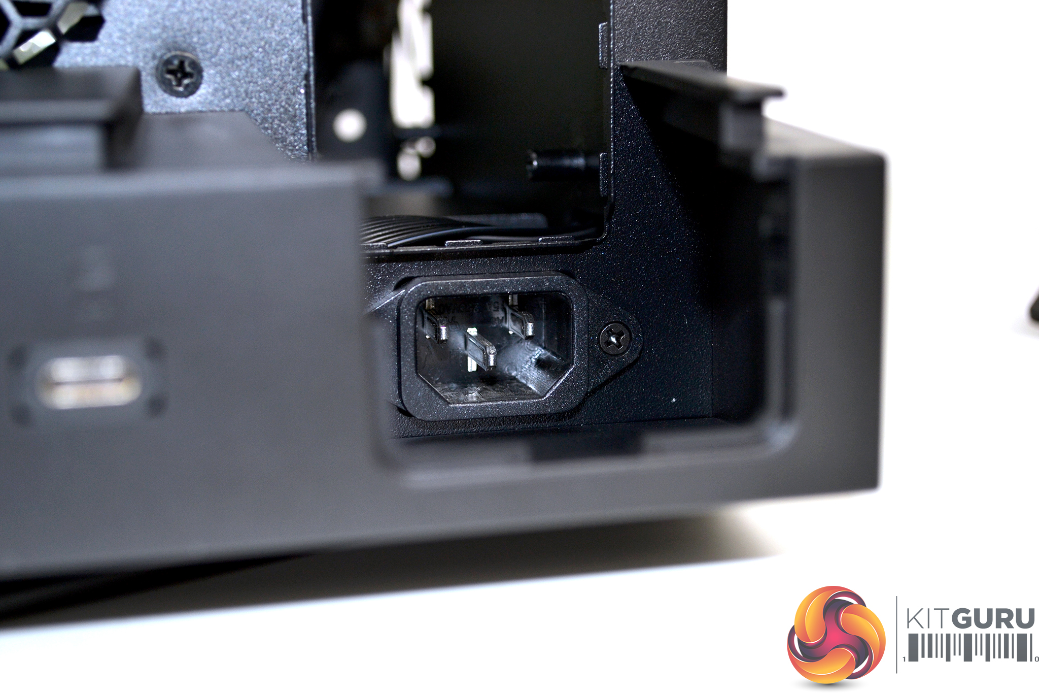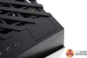 Alongside the front I/O ports is a small panel or cover, the cover can be removed to gain access to the power connection from the top. At a guess, I would say this is to make pushing the power cable into the socket easier, you could also leave the panel off to allow the power cable to exit from the top but this would probably look a little unsightly.