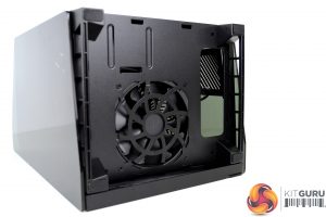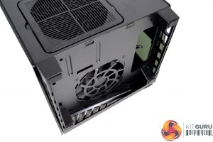 Around the back of the case where you would normally find the rear I/O and power connection is rather sparse. There are just two vents on the back, one removable filtered vent for the power supply air intake and a smaller unfiltered vent underneath where the graphics card is positioned.