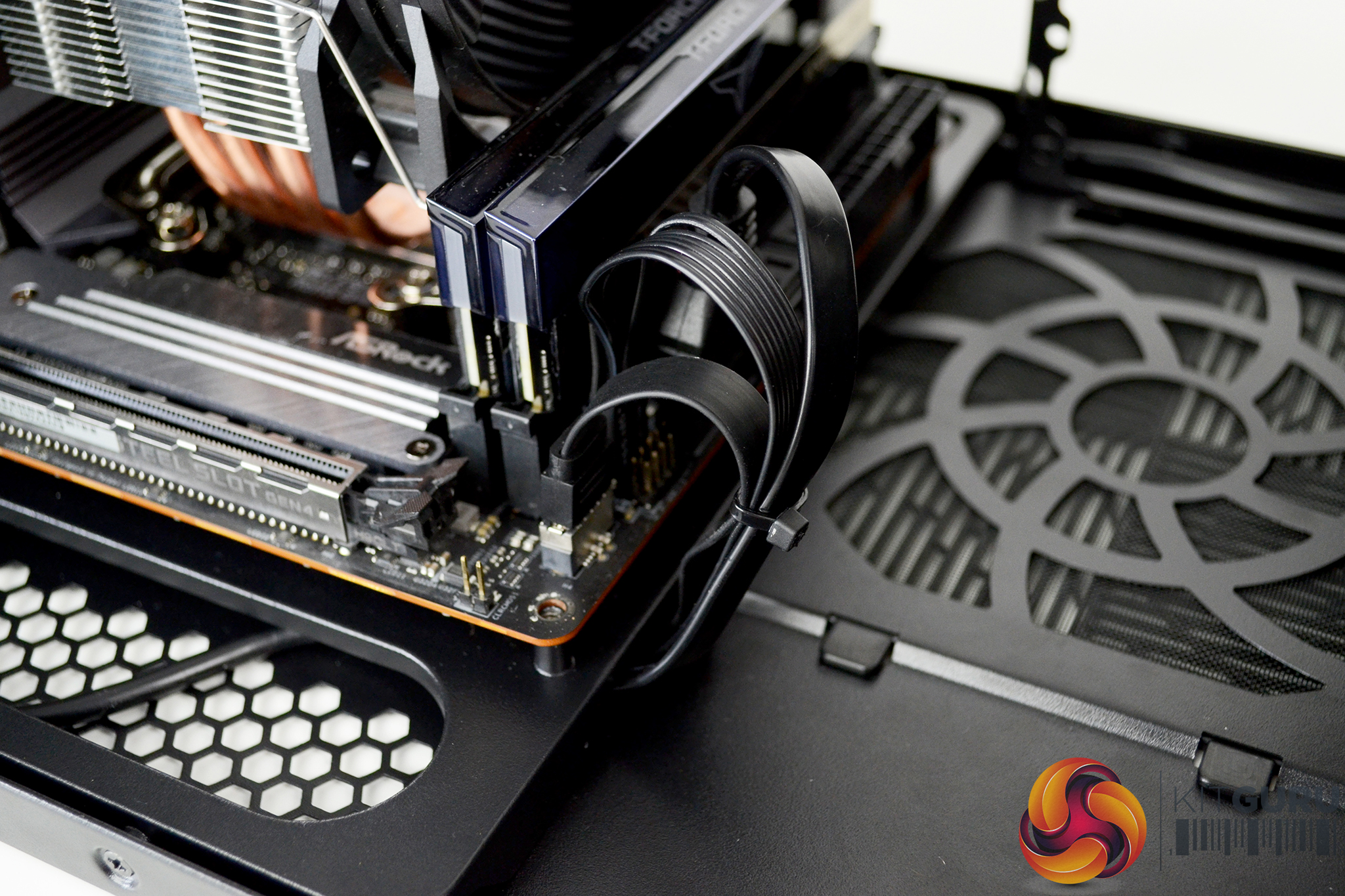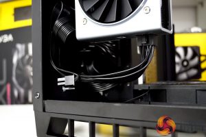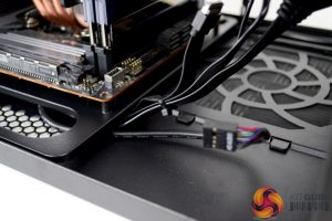 One area of the case that I was concerned about prior to the installation was cable management, specifically the front panel connectors. However, the way the front panel cables were routed from the factory worked perfectly with the ASRock B550 Phantom Gaming-ITX/AX motherboard. All that was needed to manage these cables was to push them back under the motherboard tray a little to hide them away.